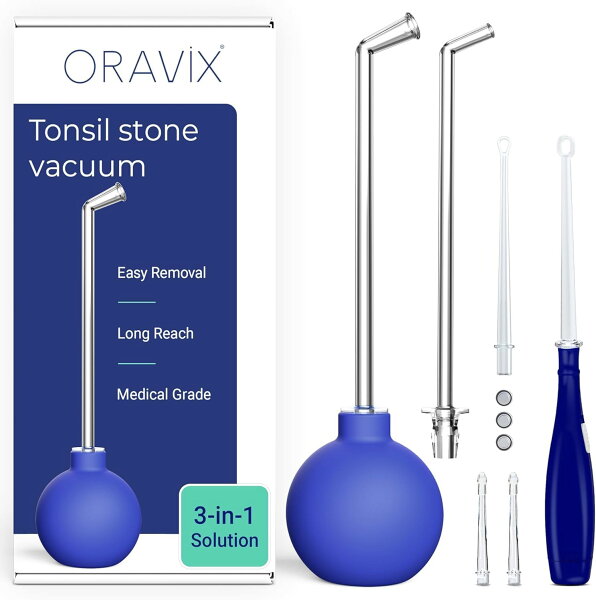 ORAVIX バキューム 膿栓吸引キット ( LED膿栓スコップ 膿栓吸引器 ノズル洗浄ブラシ セット ) 臭い玉 扁桃石 家庭用 口腔セルフケア 口臭 日本語説明書 正規品