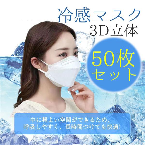 限定セール 冷感マスク 接触冷感 柳葉型 50枚 ひんやり 夏用マスク クールマスク 立体マスク 4層構造 血色カラー 不織布マスク 3D 高密度フィルター