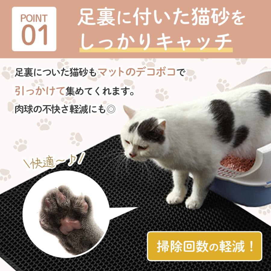 - 足裏についた猫砂もマットのデコボコで引っかけて集められる
