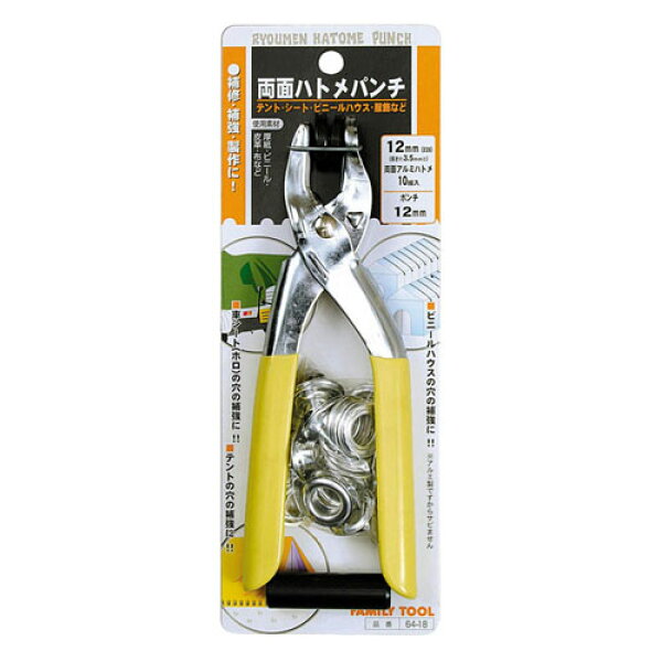 ハトメパンチ 両面 両面ハトメパンチ ハトメ付き 60106 64-18 両面ハトメパンチセット 12mm [ #28 ] アルミ製ハトメ10組付 FamilyTool ファミリーツール ミツトモ製作所