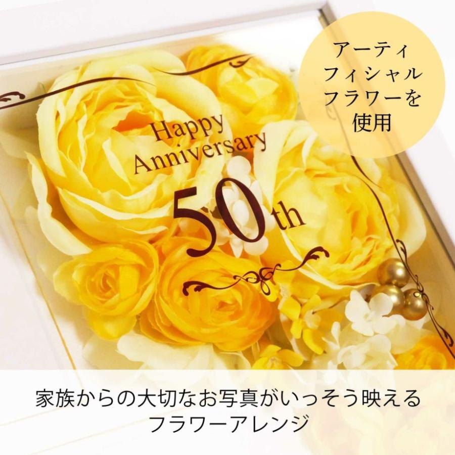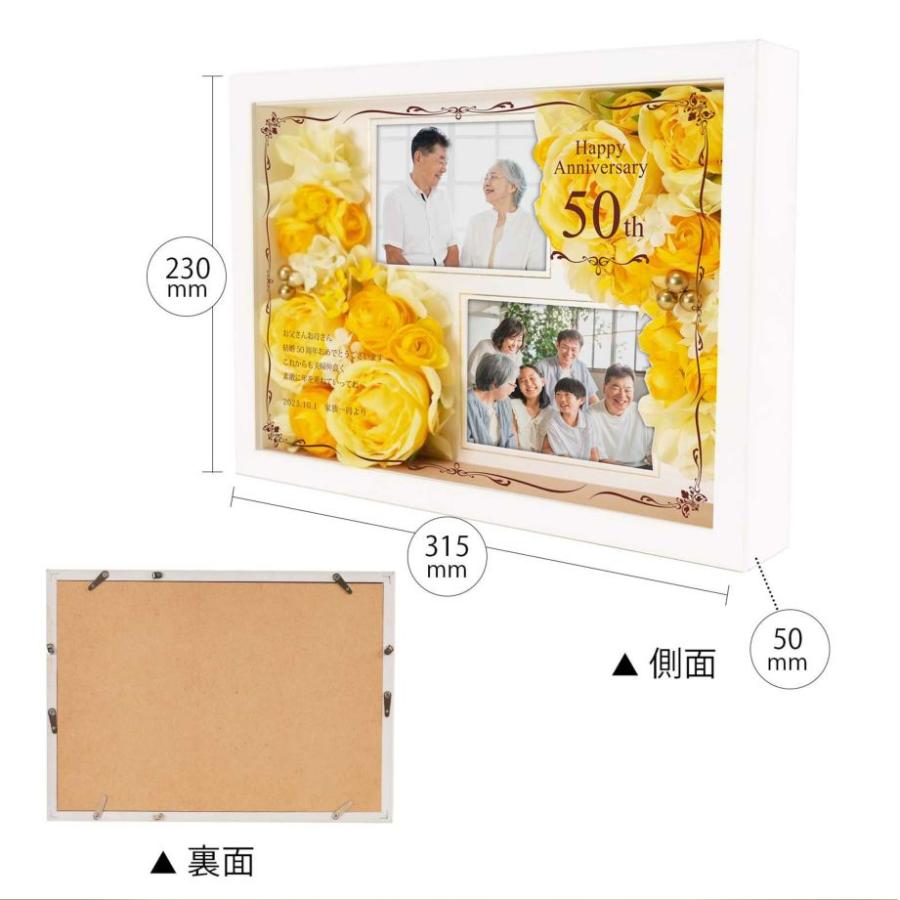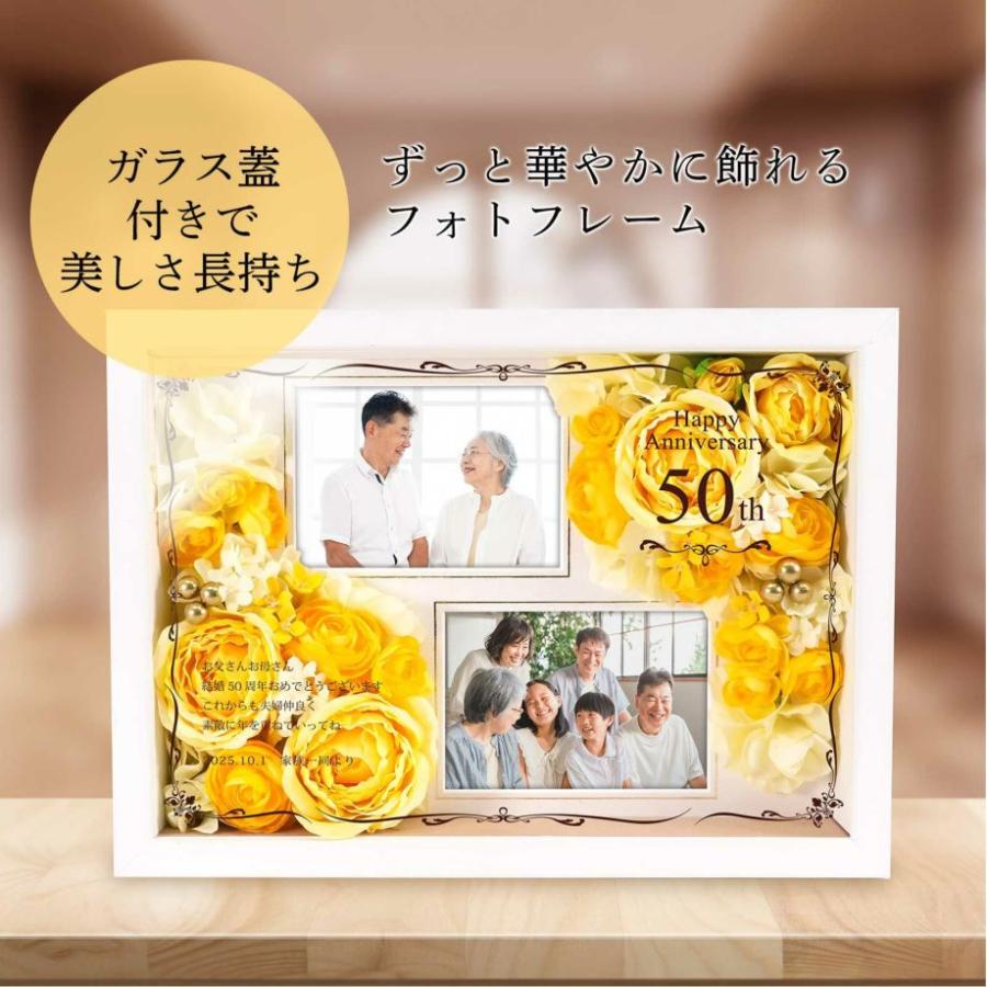 記念品 お祝い 誕生日 金婚式 結婚記念日 金婚祝い 50周年 プレゼント フォトフレーム 写真立て メッセージ入り 花 フラワー