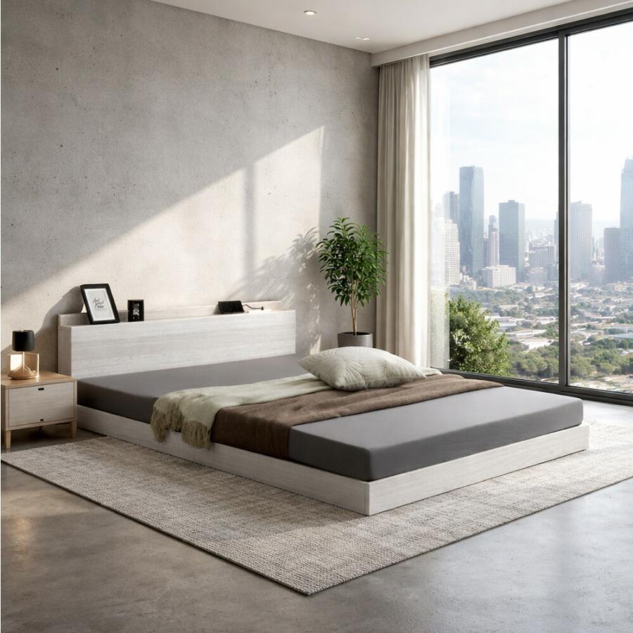 ベッド シングル すのこベッド シングルベッド おしゃれ ベッドフレーム ローベッド 宮付き USB コンセント付 木製 すのこ スマホスタンド付 ベット 連結