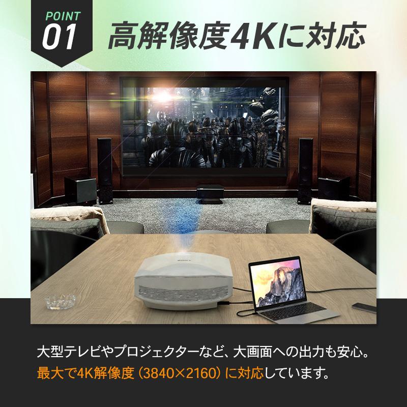 解像度:3840×2160/30Hzまで(4K@30Hz、2K@30Hz、1080P、720P等のHD解像度に対応)
