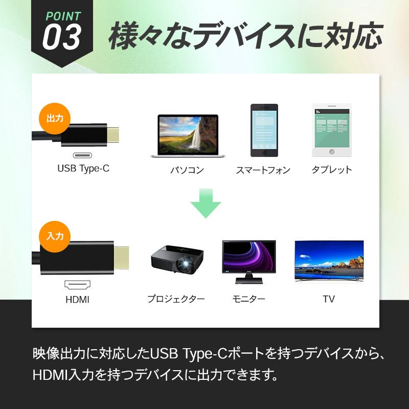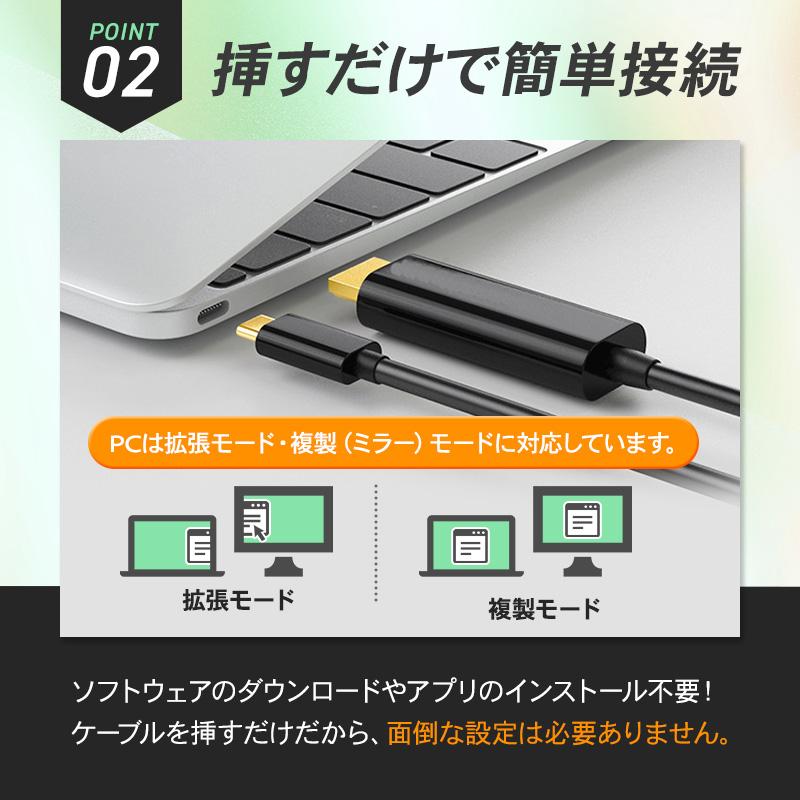 ドライバインストール等の設定不要!繋ぐだけで映像出力できるTypeC to HDMI変換ケーブルです。