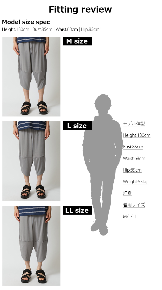 モデル着用サイズ:L 身長:180cm / B85 / W68 / H85