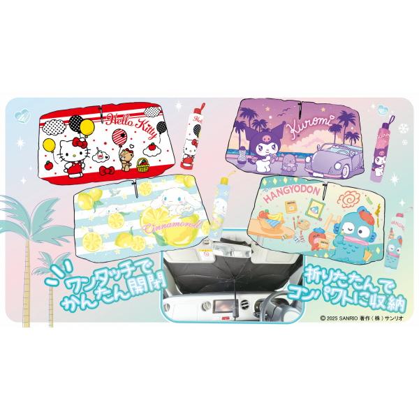 フロントガラス用のサンリオデザインがかわいい傘タイプのサンシェードに新柄登場です。