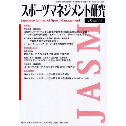 スポーツマネジメント研究 9- 2[本/雑誌] / 日本スポーツマネジメント学会/編集
