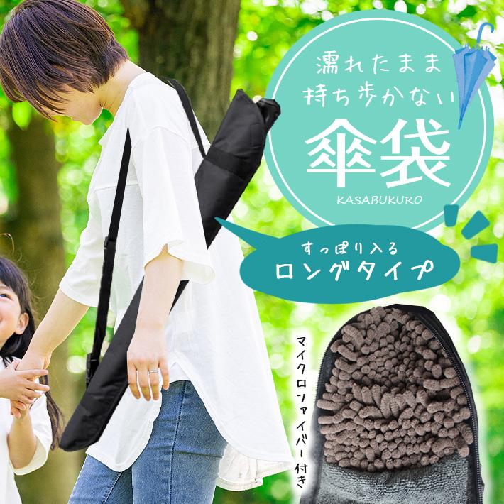 濡れた傘をカバーに入れるだけで、傘についた雨を飛び散らさずに持ち歩きできる傘袋です。