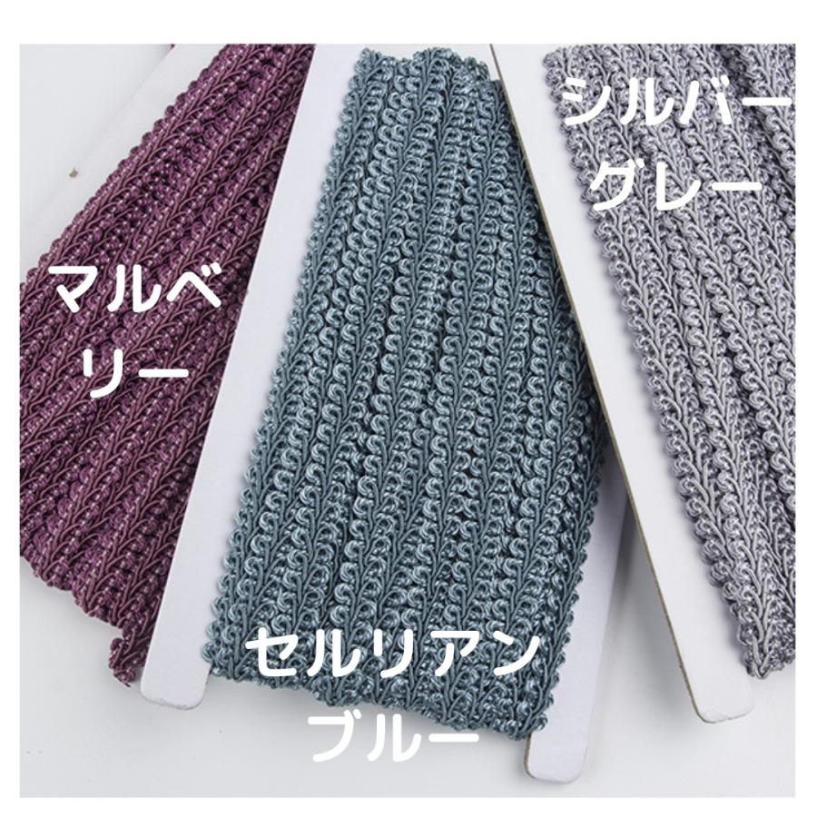 手芸用ムカデ編みトリミングブレードです。控えめな光沢があり、とてもキレイな仕上がりです。こちらのシリーズは、やや太めの糸で編まれたしっかりしたブレードです。カルトナージュ、ドール服、ぬい服の材料として、ダンス衣装等衣類の装飾として、いろいろなハンドメイドにお使いいただけます。数量3(9m)以上ご購入の場合、二本に分割してお届けすることがございます。こちらの商品は1巻13.5mです。それ以上のご注文の場合は、必ず分割してのお届けとなります。ご了承ください。