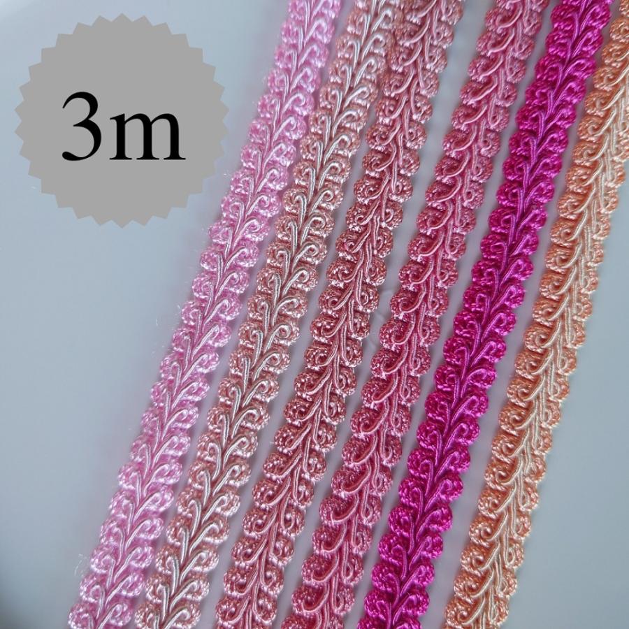 手芸用トリミングブレードです。カルトナージュやドール服、ダンス衣装の装飾など様々なハンドメイドにお使いいただけます。ミシン縫い付け、ボンドでの貼り付け共に可能です。幅1.1cm程度数量1=3m12m以上ご注文の場合、二本に分かれての納品となる場合がございます。繋がった状態での納品をご希望の場合は、お手数ですが購入前にご連絡ください。