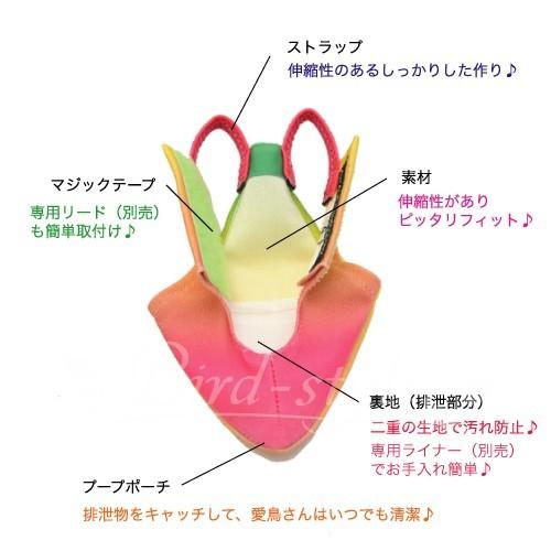 特許を取得した「プープポーチ」と呼ばれる部分に排泄物はためられ、鳥さんの体を汚さず衛生的にご使用頂けます。