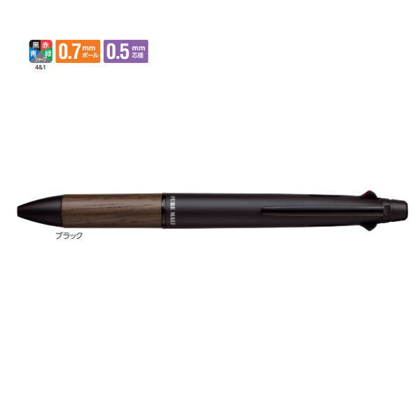 〒【在庫有】uni ピュアモルト(オークウッド・プレミアム・エディション) 5機能ペン 超・低摩擦 ジェットストリームインサイド インク搭載 ボールペン
