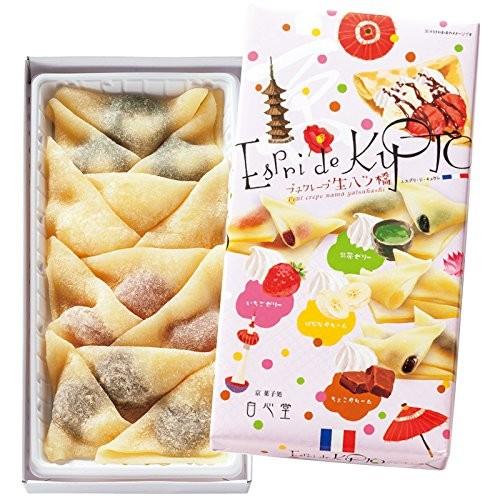 「商品情報」クレープ風で、和モダンに。 やわらかな食感の生地にミルククリームと、抹茶ゼリー、バナナクリームなど4種の味を包み込んだ現代風アレンジの生八ツ橋です。 定番の生八ツ橋をはじめ、旬の食材を使った季節の生八ツ橋や、洋風にアレンジした生八ツ橋など、八ツ橋の新たな可能性を追求する白心堂。 伝統を守りながら、新たな魅力を発信し続ける街・京都にふさわしいお菓子づくりに励んでいます。 とてもおいしく、もっと買っと ...「主な仕様」【内容量・重量】4種12個入り(抹茶ゼリー、いちごゼリー、バナナクリーム、チョコクリーム 各3個)