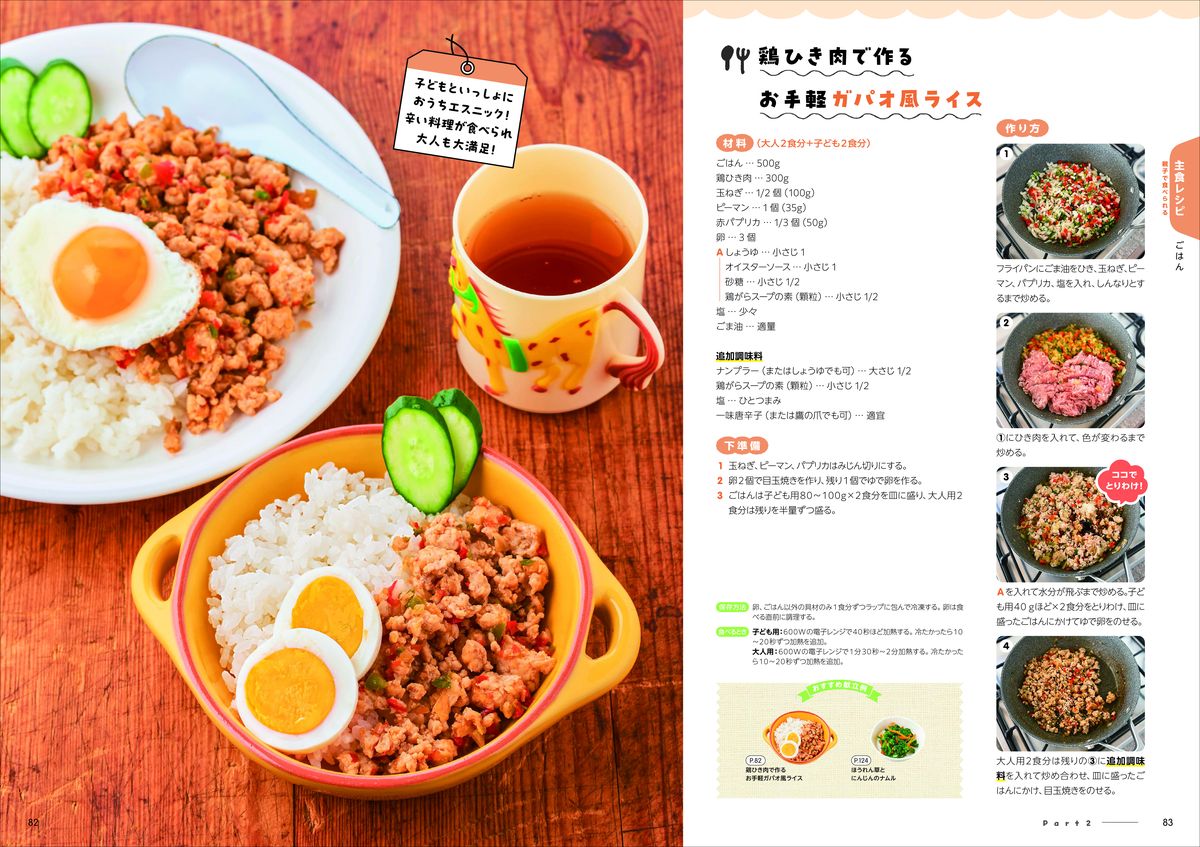 1 定番から変わり種まで親子で食べられる主役級おかず(野菜たっぷり!定番ハンバーグ/和風あんかけ豆腐ハンバーグ ほか)/2 ひと品でお腹がしっかり満たされる!親子で食べられる主食レシピ(ふわふわ卵のオムライス/炊飯器でえびピラフ ほか)/3 栄養を手軽にとれる親子で食べられる副菜レシピ(だし巻き卵/卵サラダ ほか)/4 体がぽかぽか温まる親子で食べられるスープレシピ(ミネストローネ/トマトと卵のスープ ほか)/5 甘い系からしょっぱい系まで!親子で食べられるおやつレシピ(幼児の「おやつ」の基本/バナナスコーン ほか)