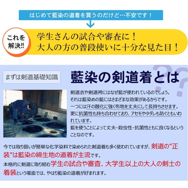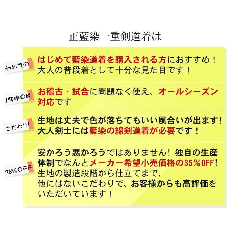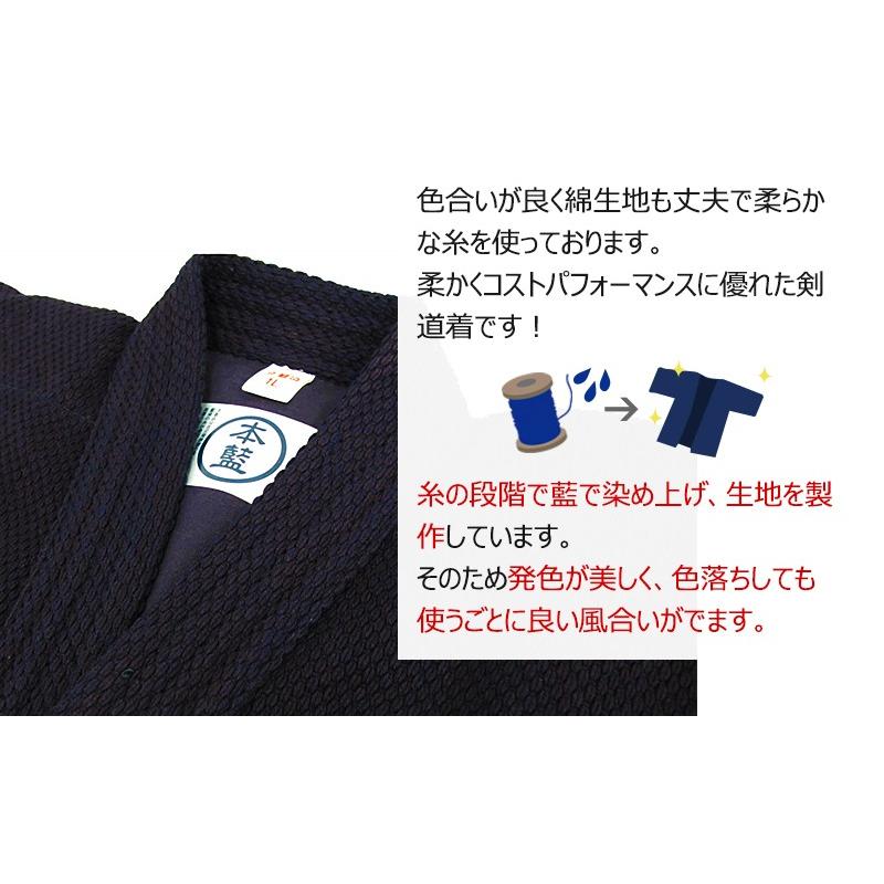 正藍染の中でも色合いが良く綿生地も丈夫で柔らかな糸を使っておりますので、柔かくコストパフォーマンスに優れた剣道着です。