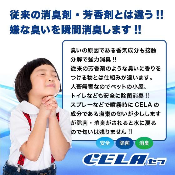弱酸性次亜塩素酸水セラ水・CELA水の20リットル1箱です。安心安全に除菌消臭ができるセラ水・CELA水です。セラ水・CELA水が安心安全に除菌消臭を行うことができるのはpH6.5±0.05の極めて狭いpH領域で安定生成でしているから!ノロウィルスやインフルエンザウィルスなどの除菌効果も第三者機関で確認取れています。有効塩素濃度も50ppmで安全に簡単除菌消臭が可能です。