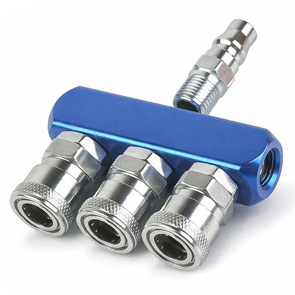 アルミ削りだしの分岐ジョイント+1/4"メスカプラー(3個)+1/4"オスカプラー(1個)
