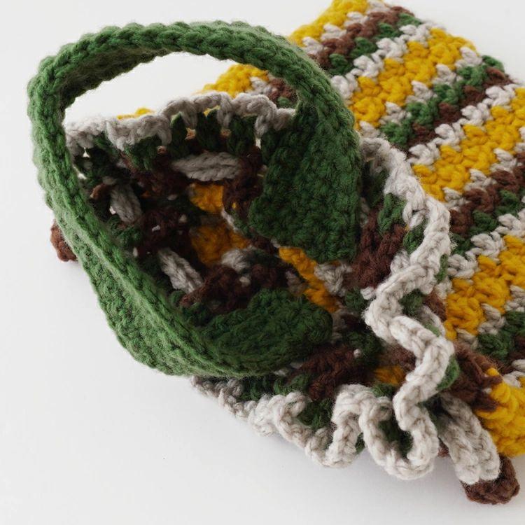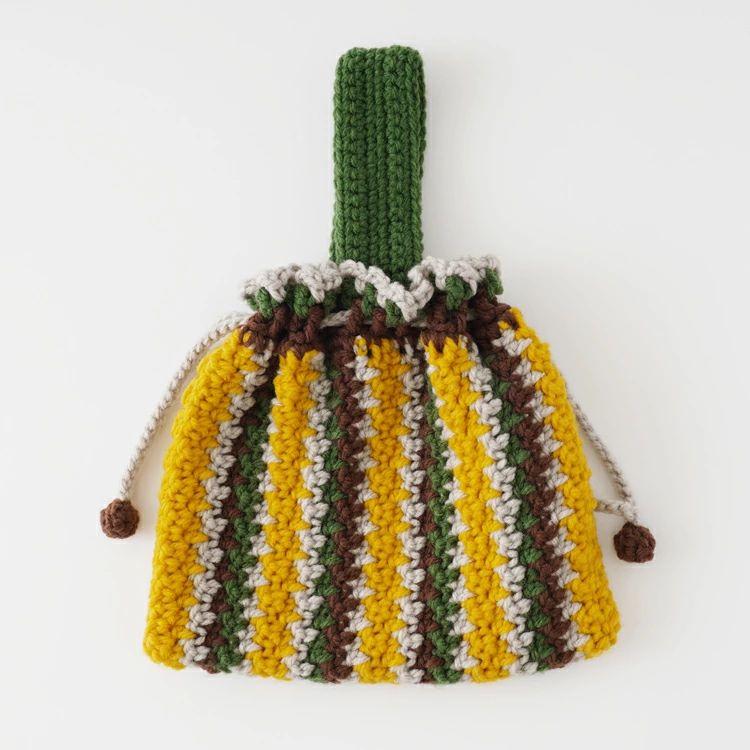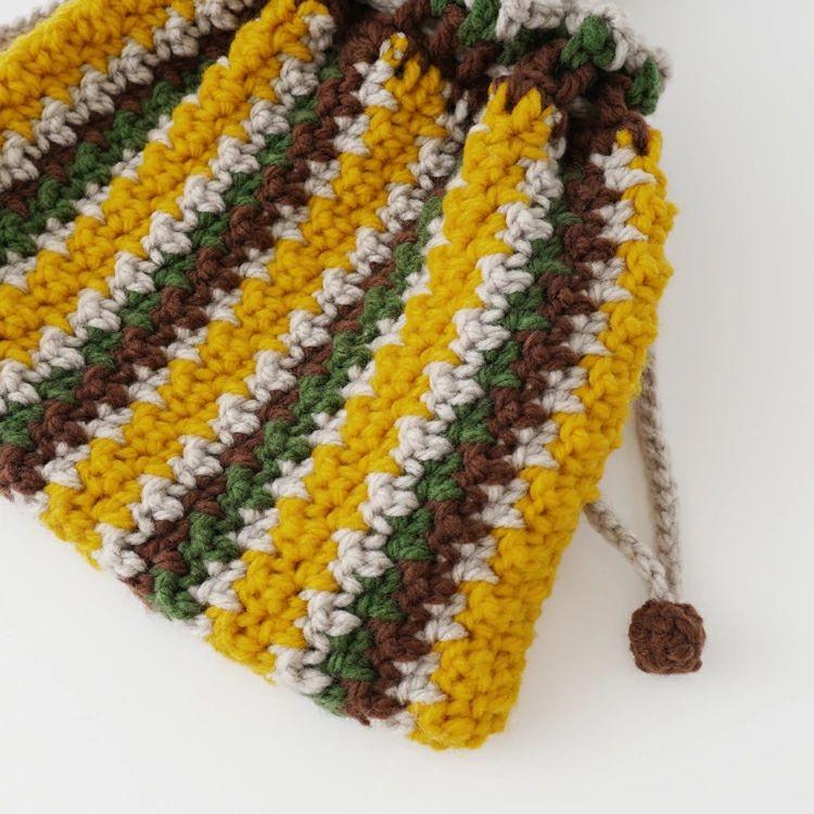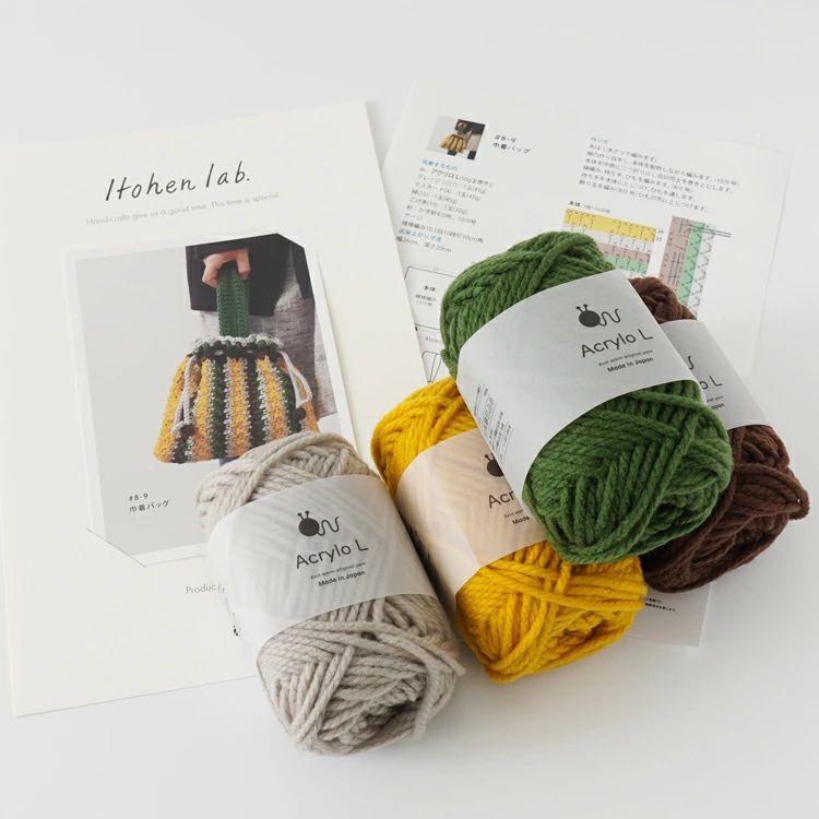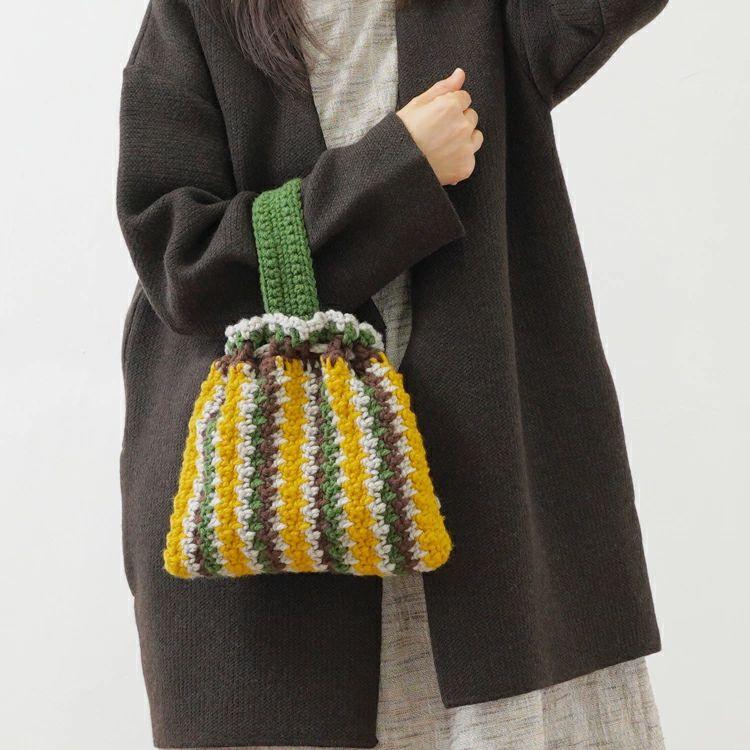 knitworm 編み物キット #8-9 巾着バッグワンハンドルで実用性のある巾着バッグのキット。極太毛糸でしっかり厚みがあり、ボーダーの配色もかわいいです。キット内容・毛糸:アクリロL/グレージュ(17)、マスタード(4)、緑(15)、こげ茶(19)…各1玉・レシピ…1枚(※基本的な編み方の解説は入っていません。)出来上がり寸法(目安)幅26cm、深さ20cmご準備いただくもの・かぎ針8/0、10/0号爆買