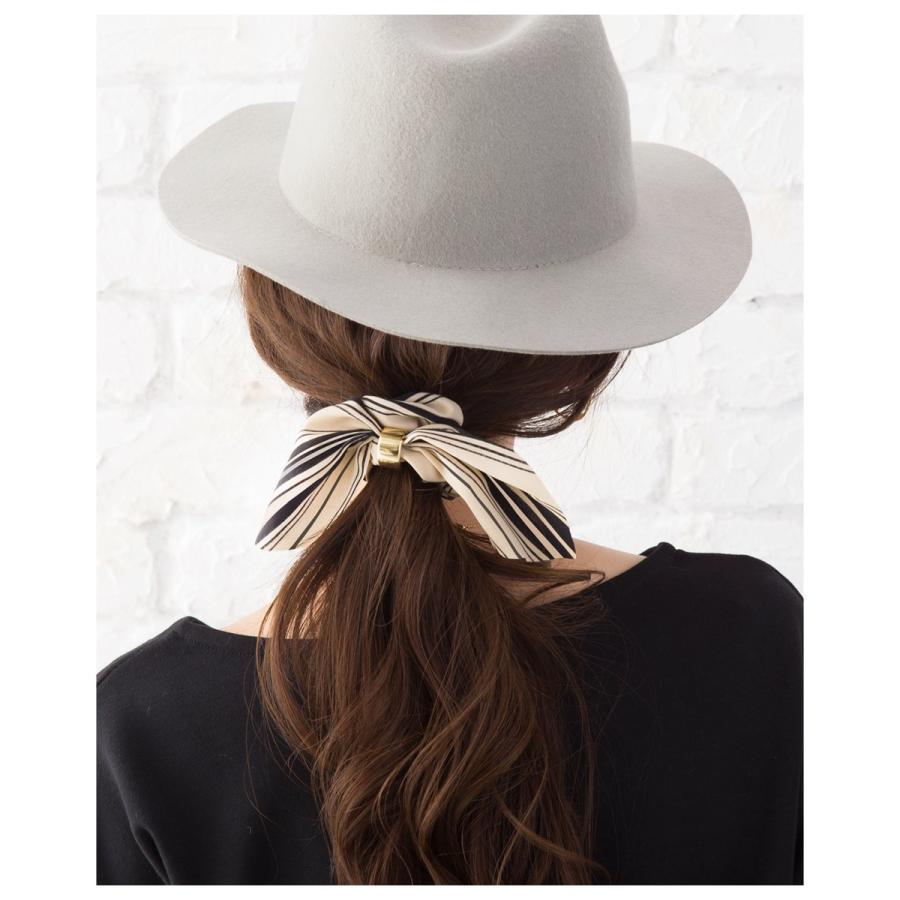 キュートながらも落ち着いた色合いと質感が上品さを添えるスカーフリボンシュシュ。普段の簡単なヘアスタイルもこれひとつでとびきりレディな印象に。使わない時は手首やバッグに着けても◎■サイズモチーフ大きさ:約17.0cm ■重さ11.3g■素材伸縮ゴム 合金 ポリエステル【Creamdot クリームドット】
