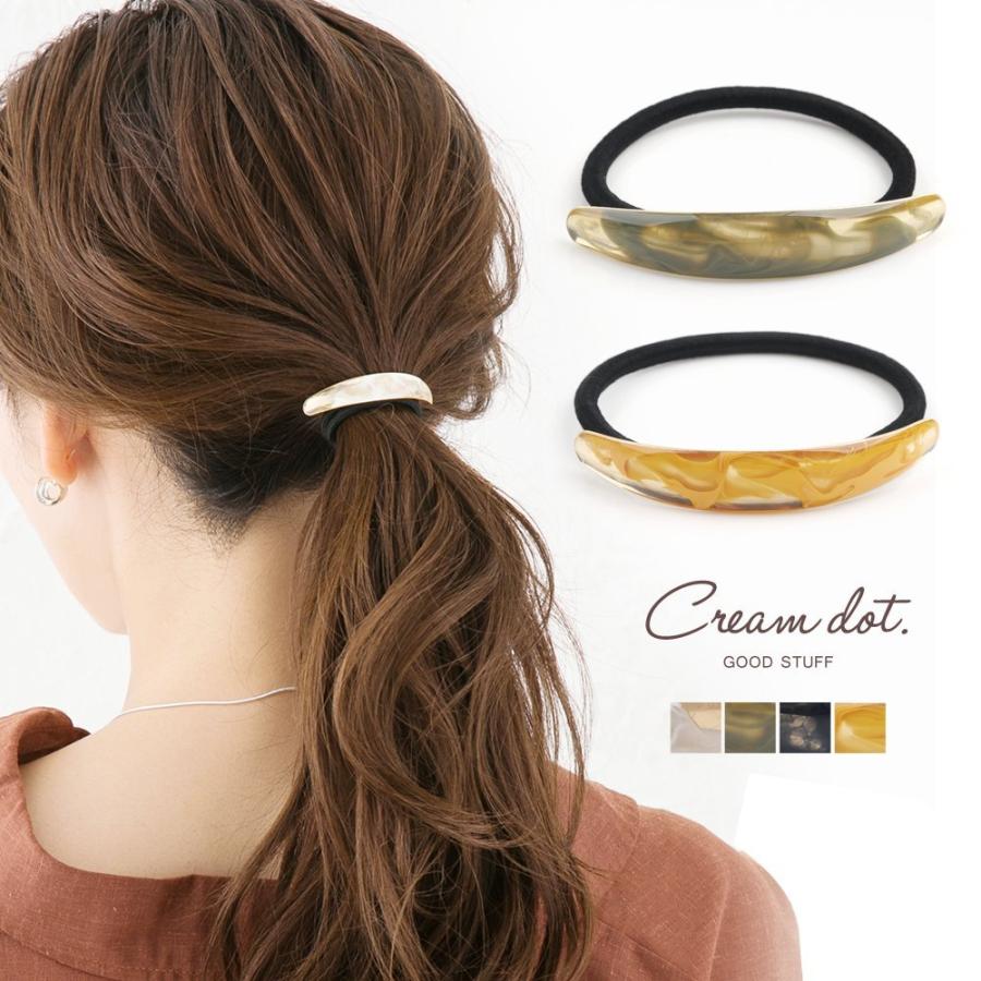 控えめなサイズ感でお洒落見えするマーブルヘアゴム。ひとつひとつ違うマーブル模様が愛らしいアイテムです。ポニーはもちろん、編みこみアレンジの毛先に添えるのもオススメ。■サイズモチーフの大きさ 5.0cm×1.0cm■重さ4.7g■素材合金 アクリル樹脂 伸縮ゴム【Creamdot クリームドット】