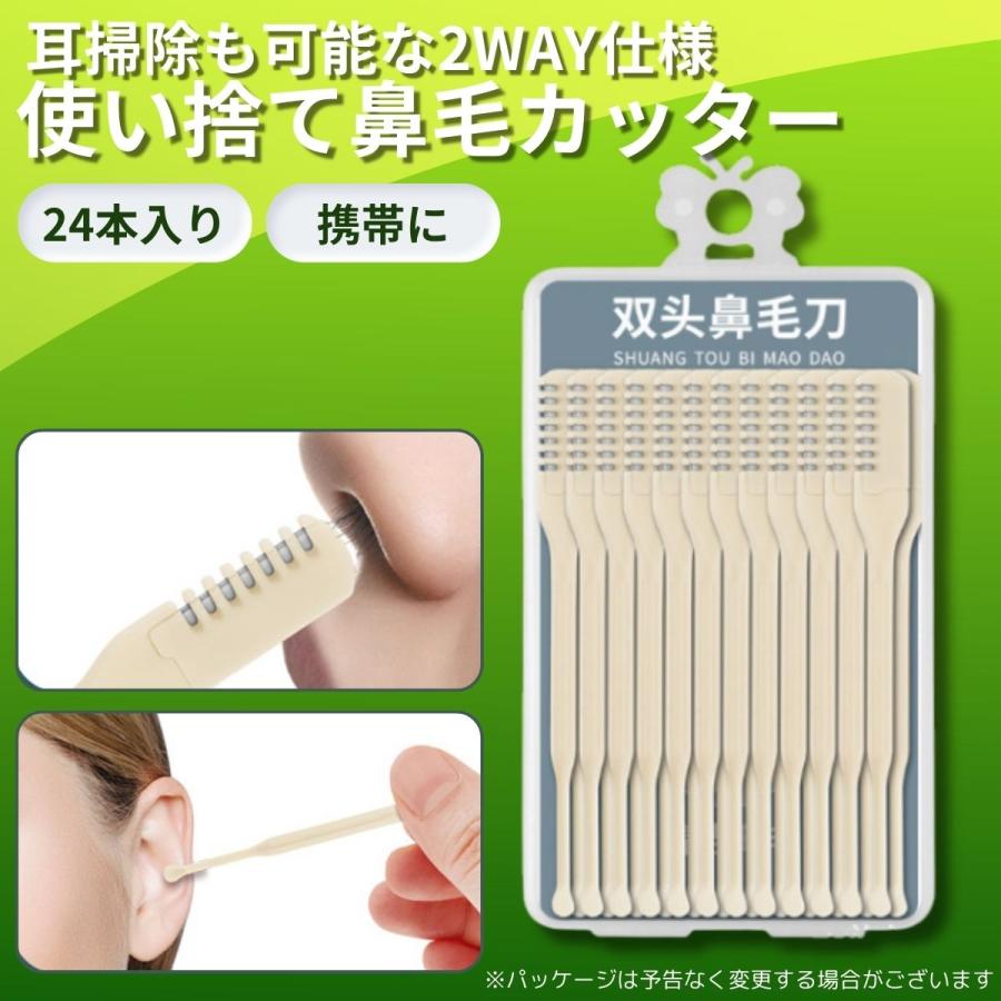 【製品特徴】・こちらは鼻の穴から出てきそうな鼻毛をサクサク刈り取る優れものです。・鼻の穴に沿って刃を動かし毛を刈り取るだけです。・剃刀部分にはストッパーが付いているので怪我をする心配はございません。・刃を水平に動かすだけでなく手前斜めに引くように使うときれいに刈り取れます。・男性の耳毛にもかなり効果がありました。・お得なまとめ買いもありますので是非お買い求めください。【セット内容】・鼻毛カッター(耳かき付き)*24本