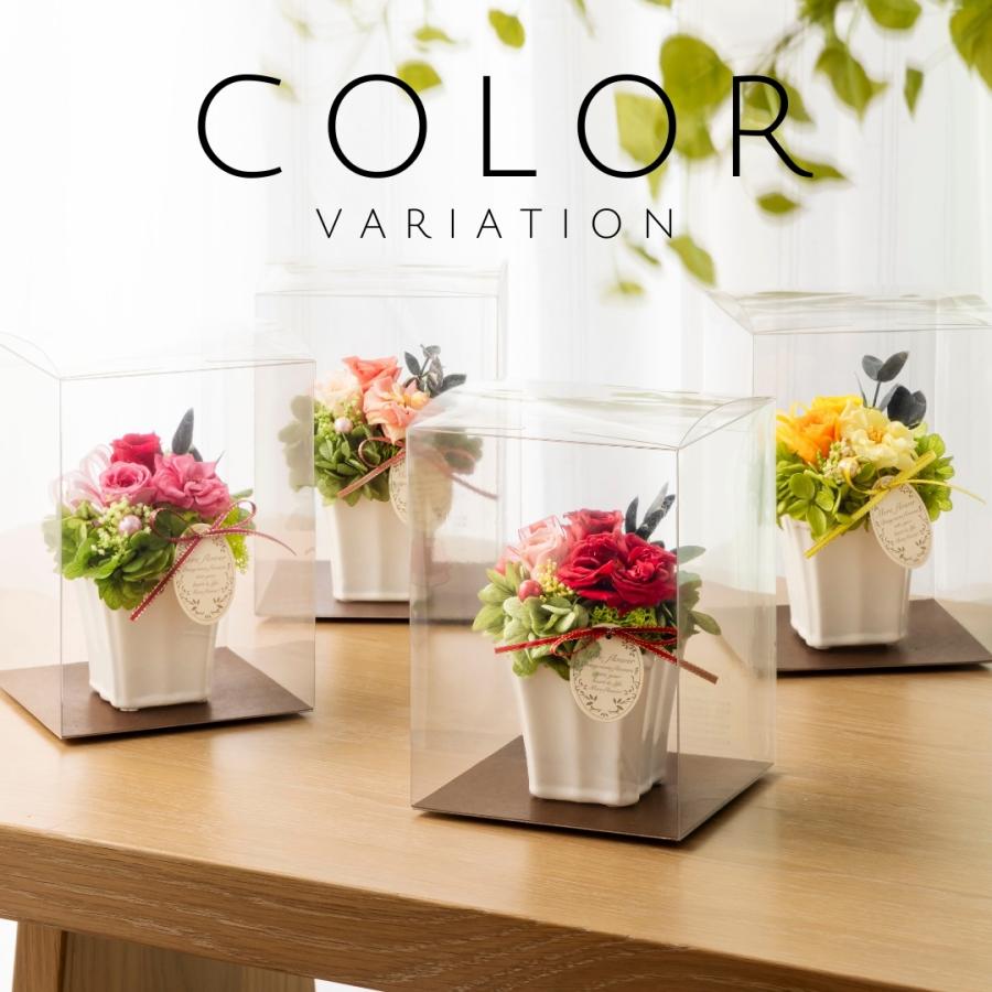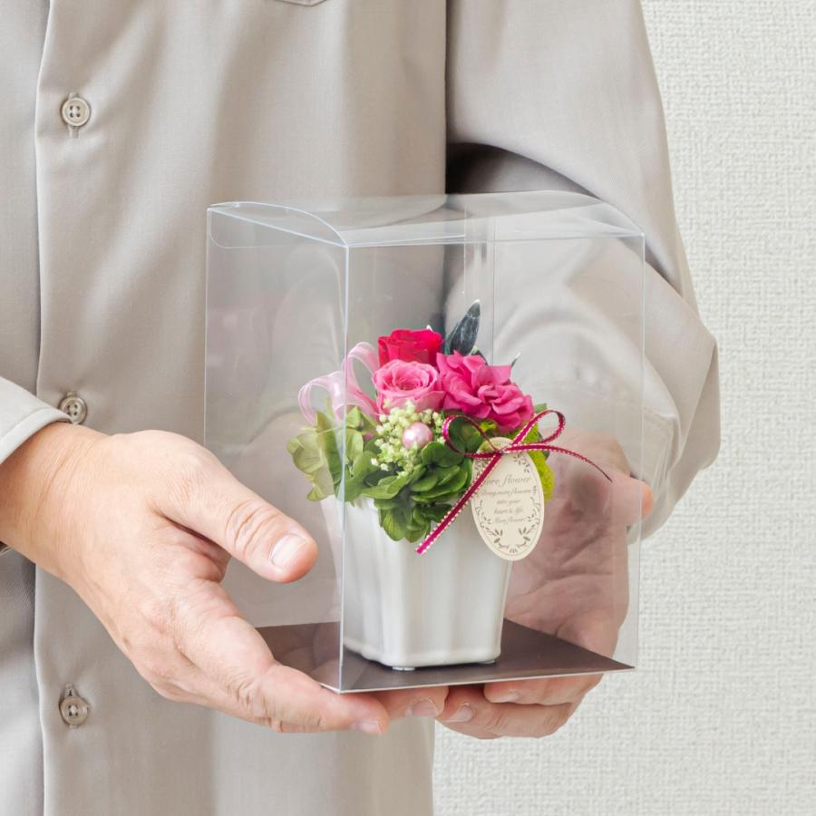 クリアケース入りのプリザーブドフラワー アレンジメント。