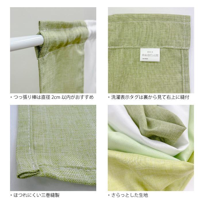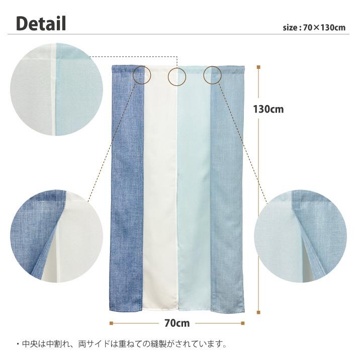 ・サイズ:幅70×丈130cm・素 材:ポリエステル100%・中国製【 特徴 】 ・結んでアレンジを楽しめます。・ロッドポケット(上部が筒状に縫製)仕様。・ギャザーができることで装飾性が増し、フェミニンな印象に。【 注意事項 】※つっぱり棒は付属しておりません。※中割れ済みののれんです。※商品写真はできる限り実物の色に近づけるよう撮影しておりますが、 光の当たり具合やご覧になる環境などにより色合いが異なって見える場合があります。