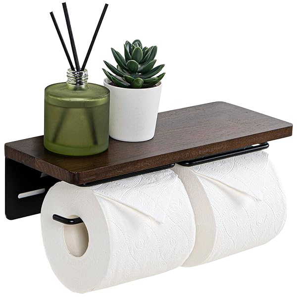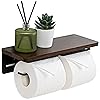 [SELENEFF] トイレットペーパーホルダー 2連 天然木使用 小物が置ける天板 横から簡単取り替え 押さえフタ付き ツインタイプ スチールフレーム 組立不要 取付簡単