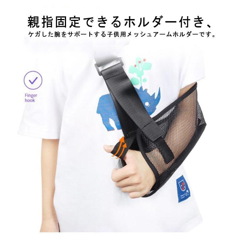 親指固定 アームホルダー 子供用 腕吊り サポーター 底プレート入り 三角巾 骨折 脱臼 腕つりサポーター 女の子 男の子 キッズ アームスリング 通