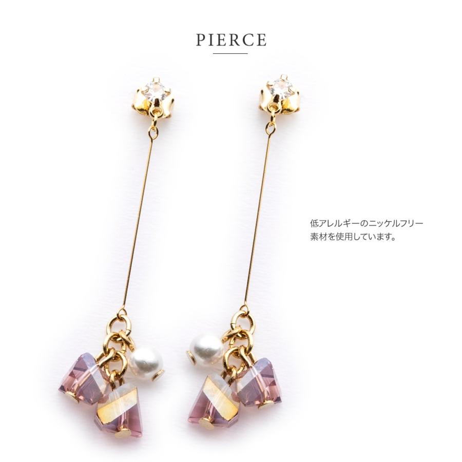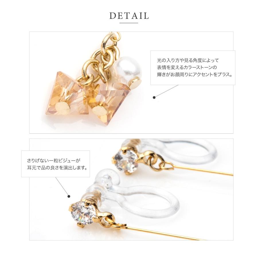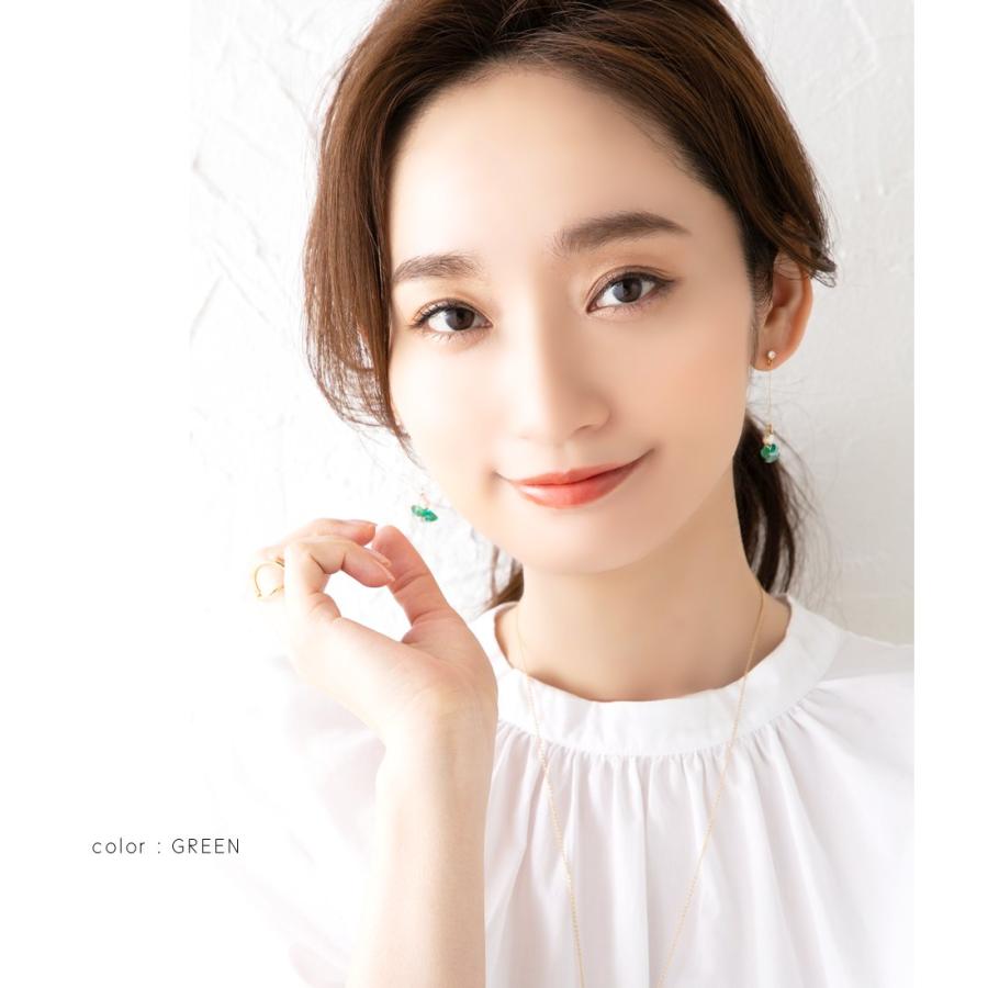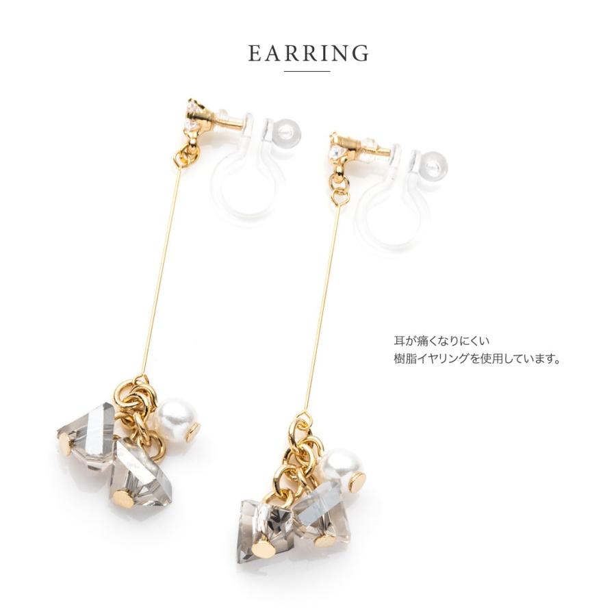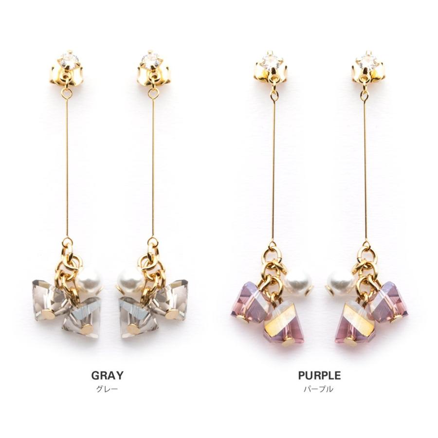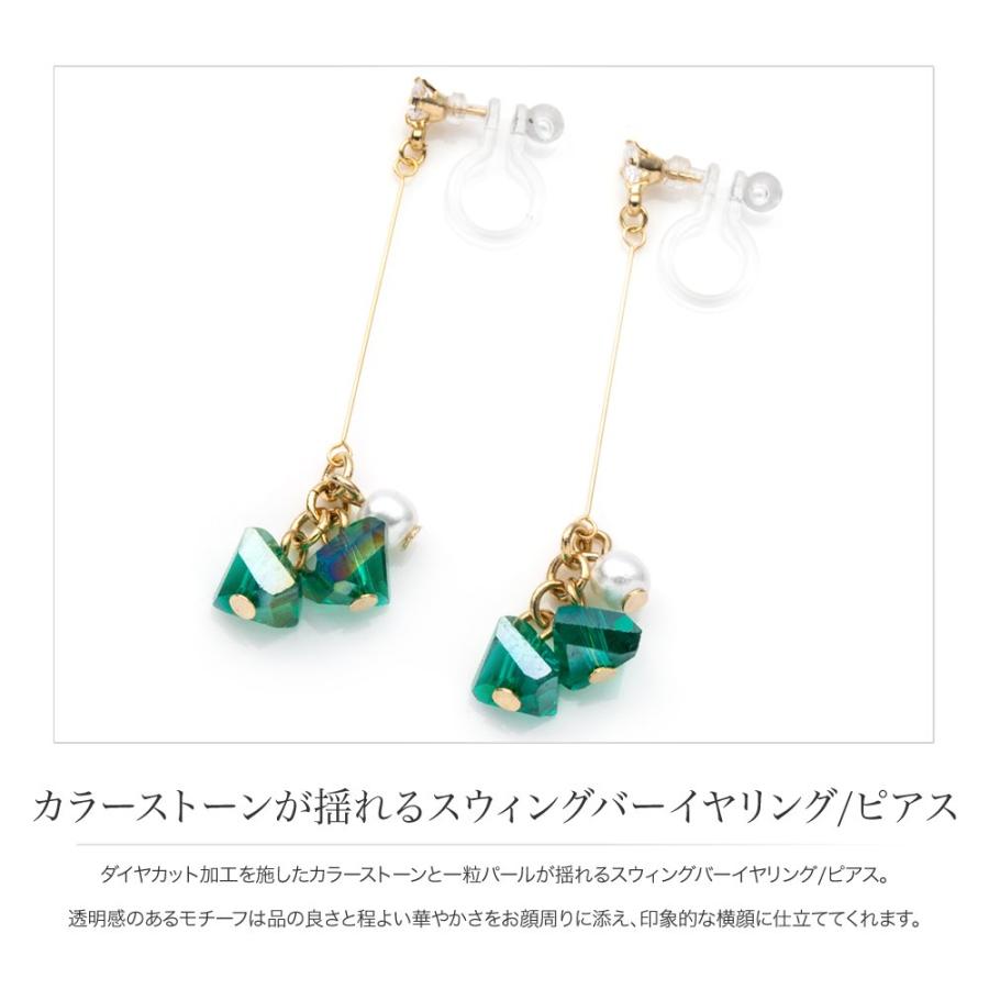 ダイヤカット加工を施したカラーストーンと一粒パールが揺れるスウィングバーイヤリング/ピアス。