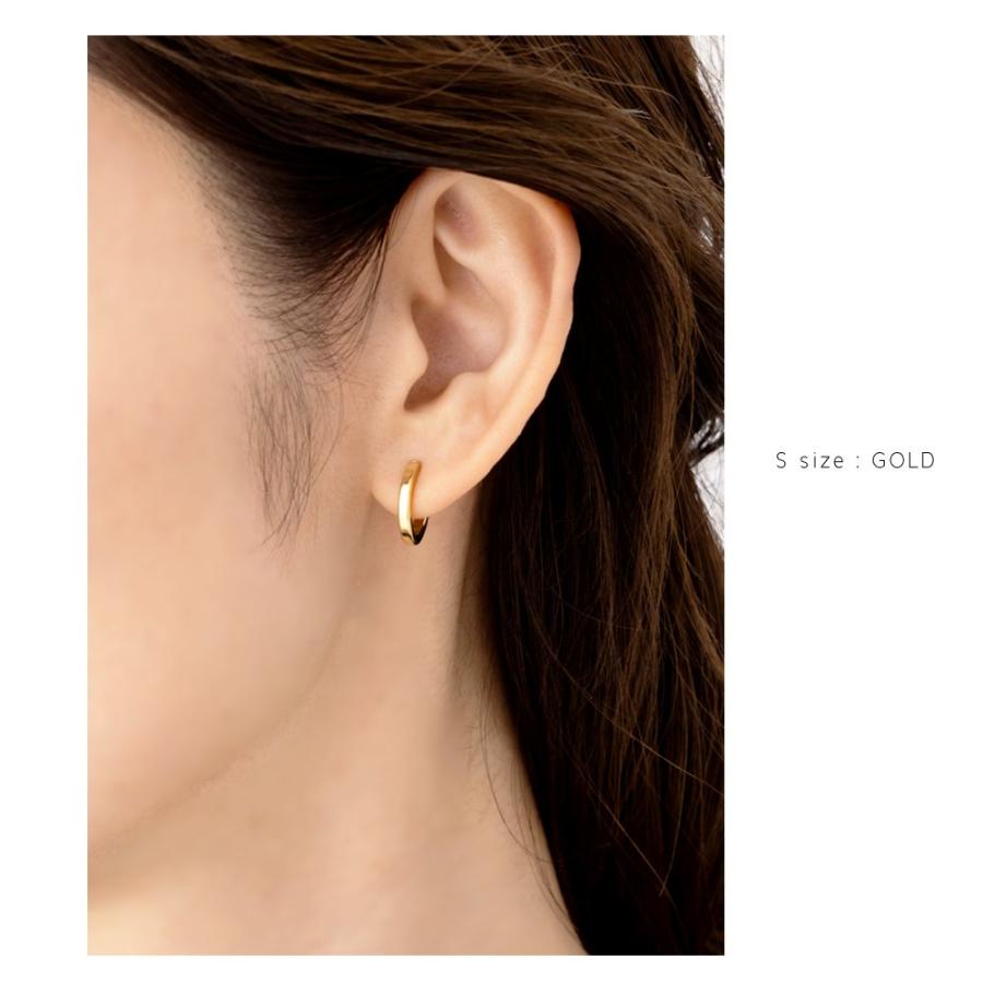 艶めくメタルのシンプルなフープピアスはどんなコーディネートにも馴染む優秀アイテム。