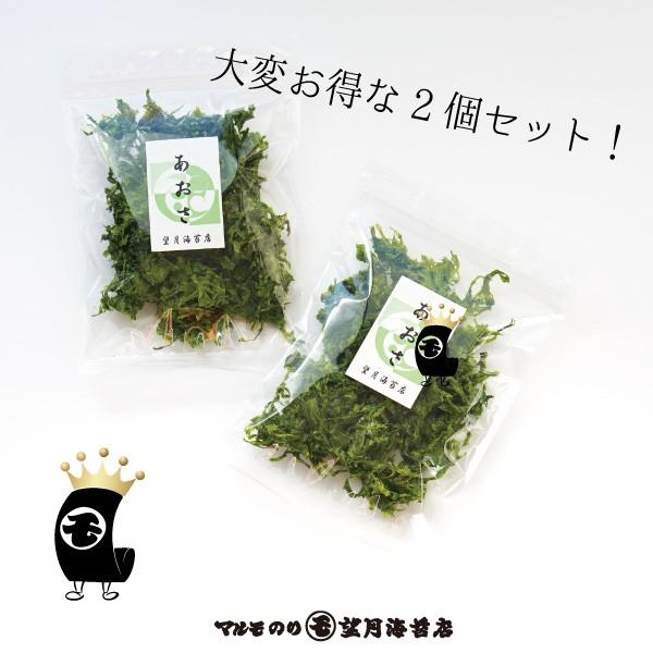 内容量:あおさ25g×2袋保存方法:常温保存賞味期限:6ヵ月原材料:ヒトエグサ原産地:日本国産当店のアオサは三重県の伊勢志摩産を使用しております。香り高く、定番のお味噌汁はモチロン!卵焼きやかき揚げの天ぷらにしても美味しくいただけます。アオサは強い光や高温に弱いので、冷蔵庫に入れて保存しておくと色落ちが防げ香りが長持ちします。まれに、他の海藻類などが混入している場合がございますので取り除いてからご使用ください。