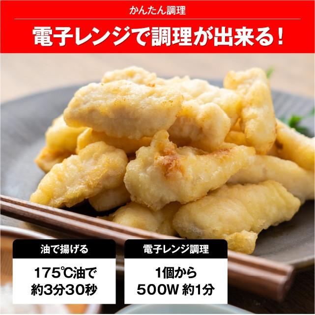 若鶏の柔らかいむね肉を使ったしみじみ美味しいとり天!うどんに入れても美味です!大分の郷土料理でもある美味しいとり天がお手軽に!柔らかな鶏のむね肉に塩ベースのあっさりとした味付けが癖になる美味しさ。油で揚げても良いのですが、この商品は電子レンジで調理OK。おかずのバリエーションとして冷凍庫にストックしておけばかなり便利な一品!