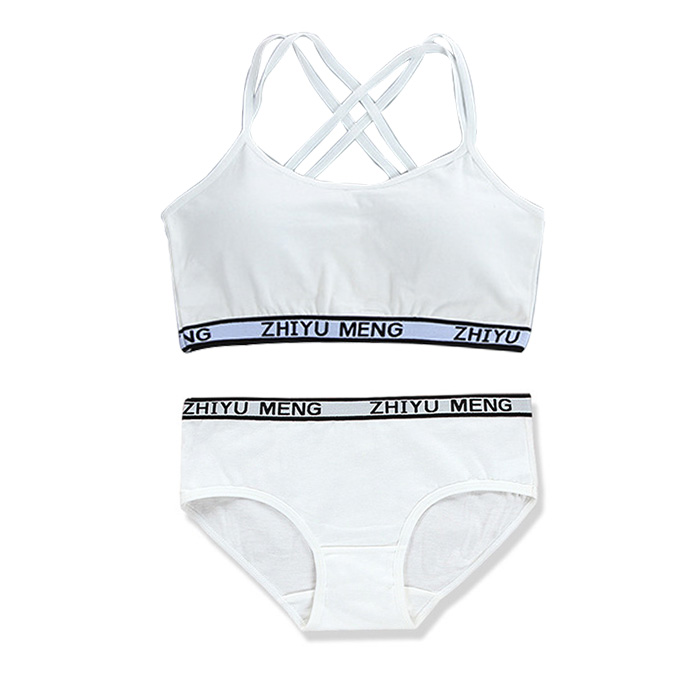 小学生高学年〜中学生向け女の子用下着。(145cm/150cm/155cm/12歳/13歳/14歳)スポーツブラとパンツの上下2点セット販売です。