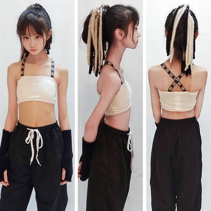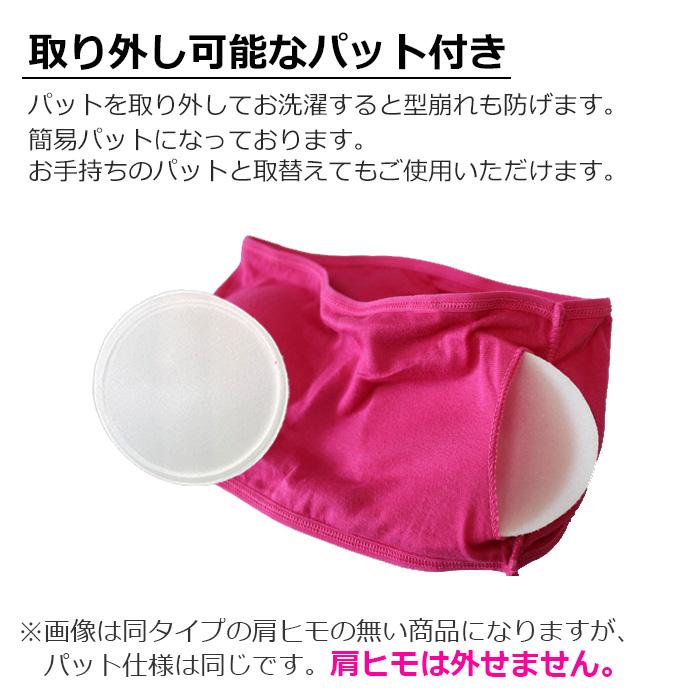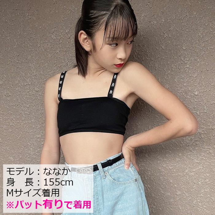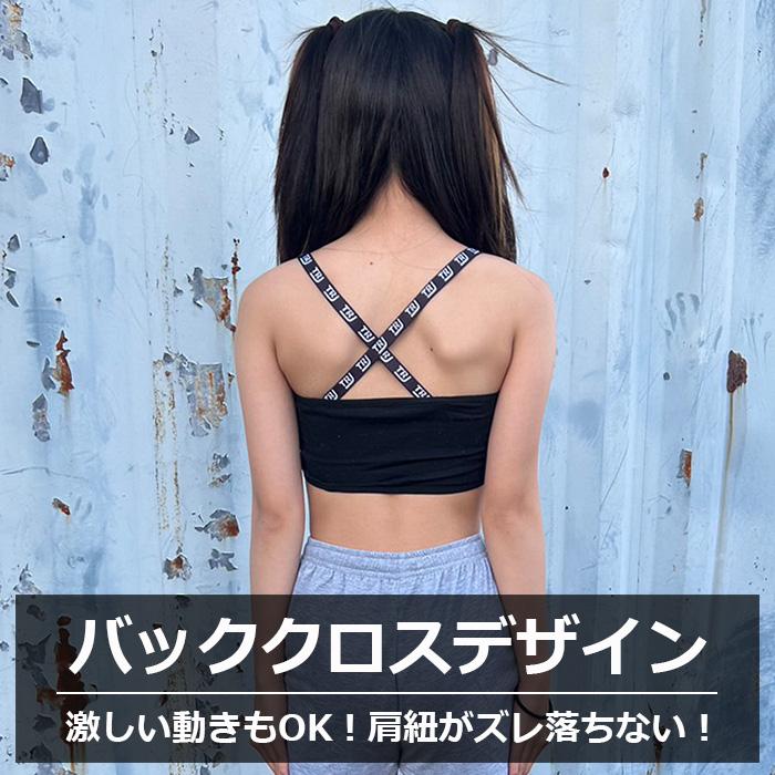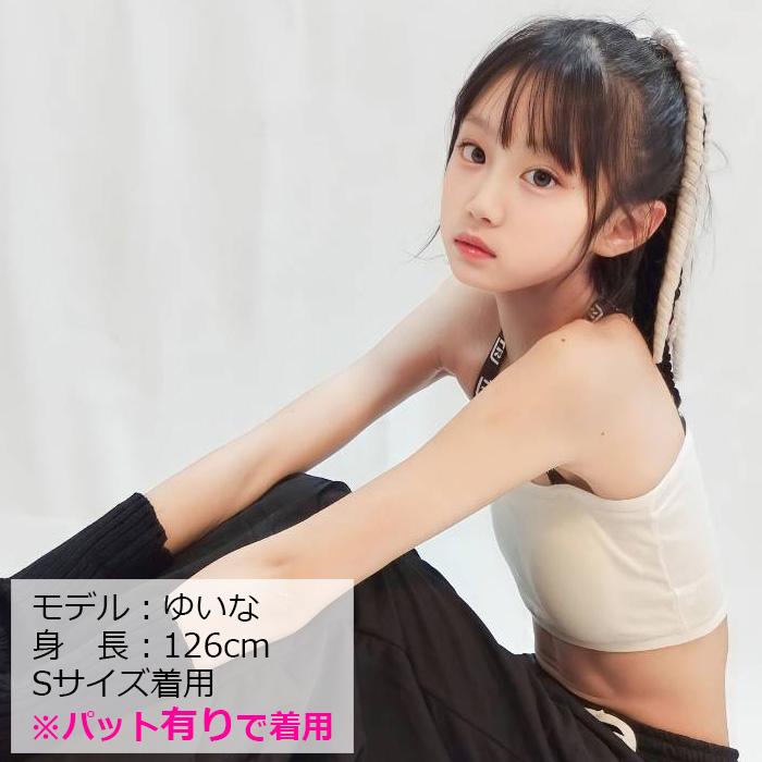 パッドが付いているのでブラジャーがまだ早いキッズのスポーツブラやブラトップに。パットは取り外しOK。