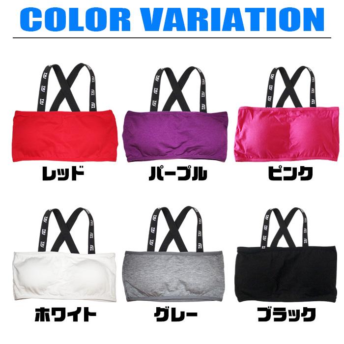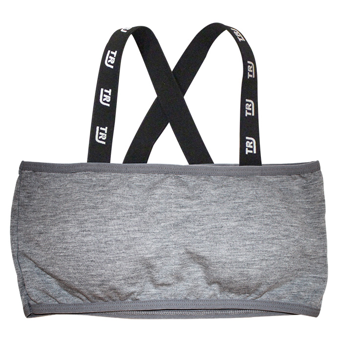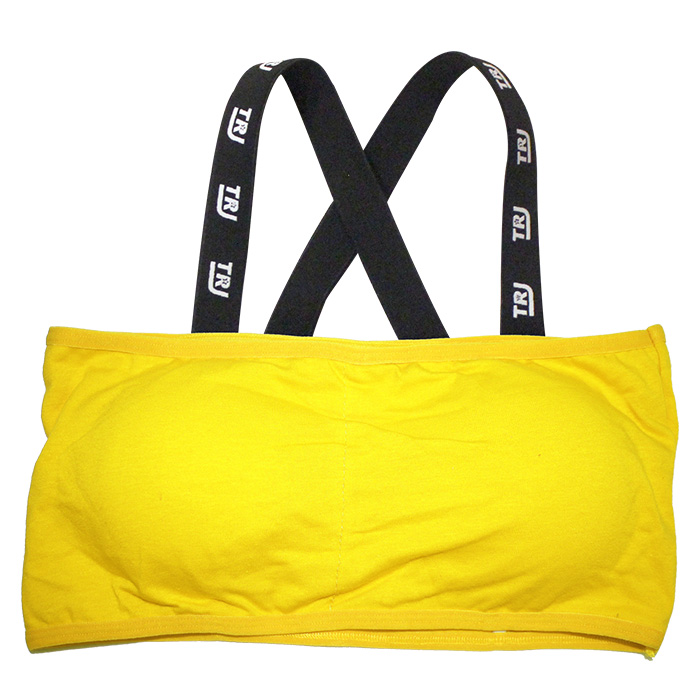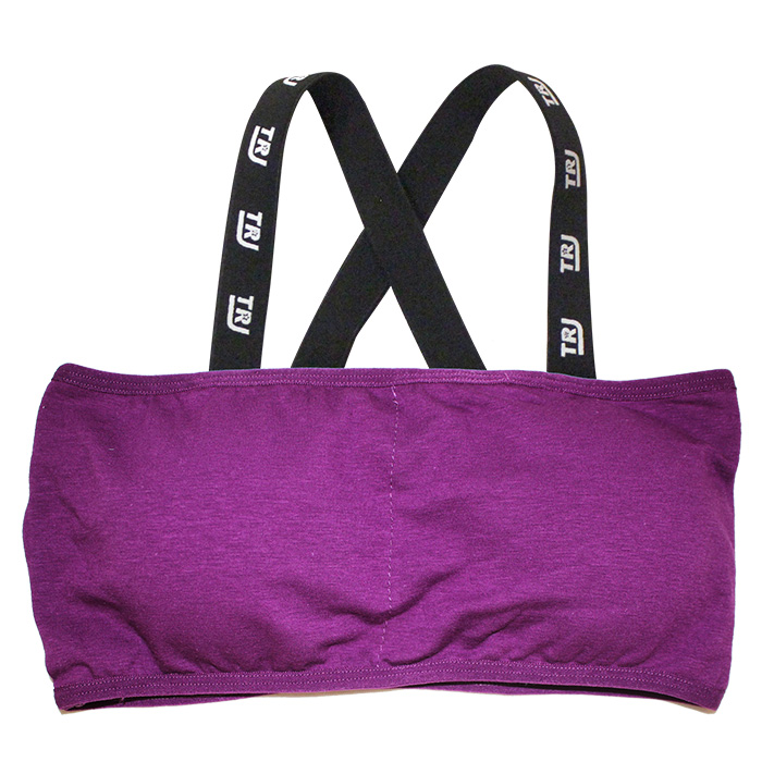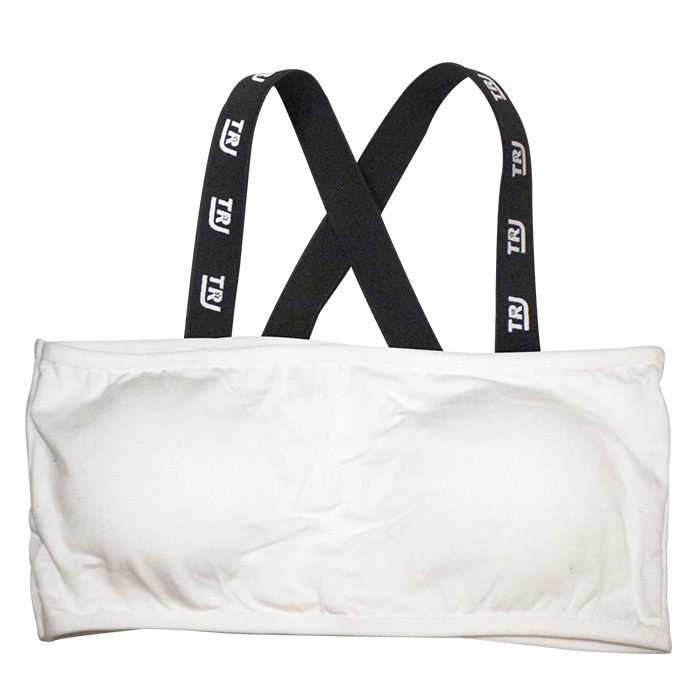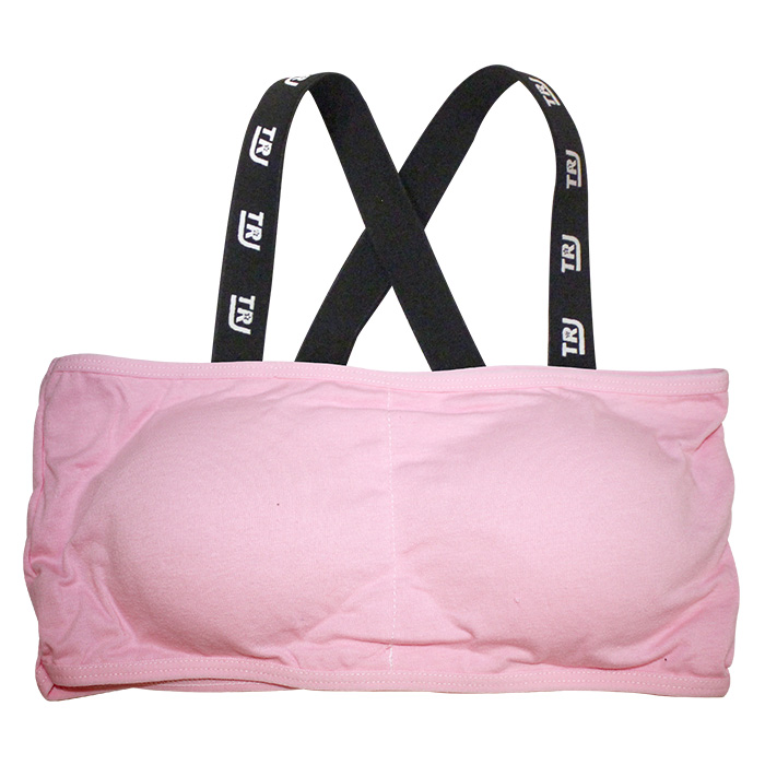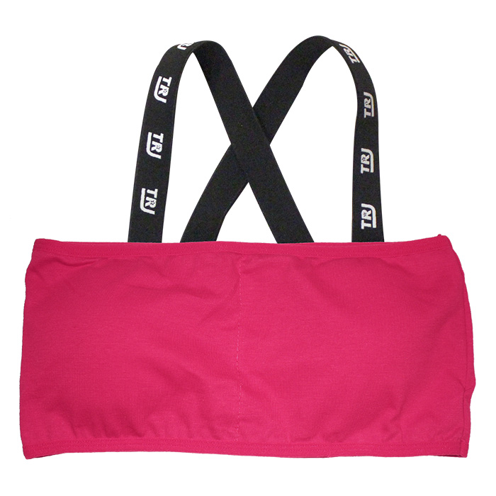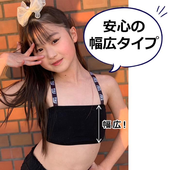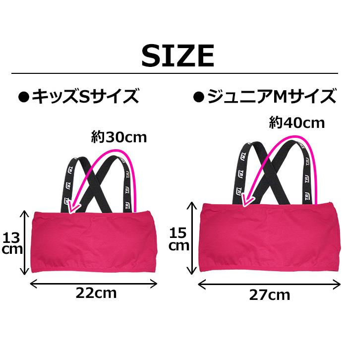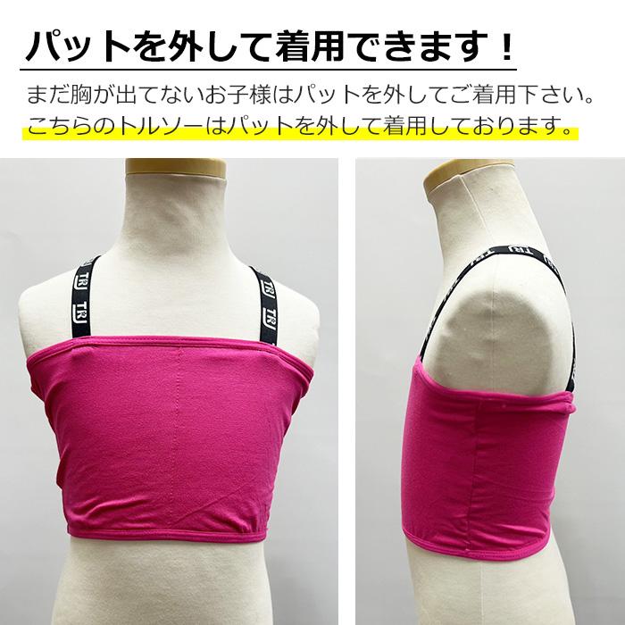 TRJロゴのクロス肩紐がかっこいい子供向けパット入りカラーチューブトップ。