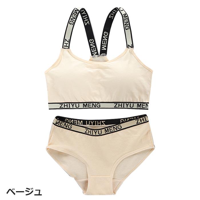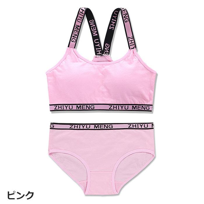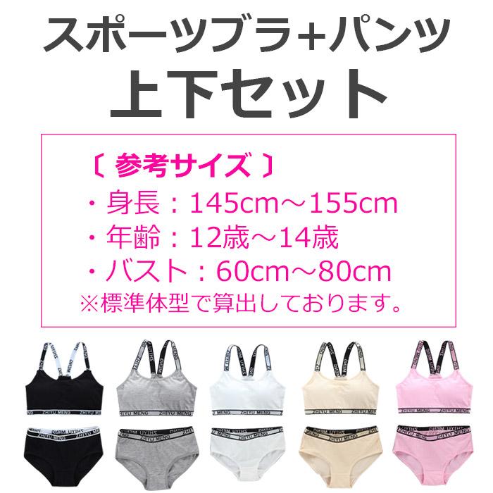 小学生高学年〜中学生向け女の子用下着。(145cm/150cm/155cm/12歳/13歳/14歳)スポーツブラとパンツの上下2点セット販売です。
