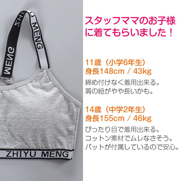 見えてもかっこいい英字肩紐のスポブラなので、ブラジャーはまだ早いキッズのチューブトップやブラトップとしても安心して着用いただけます。 春 夏 秋 冬 爆買