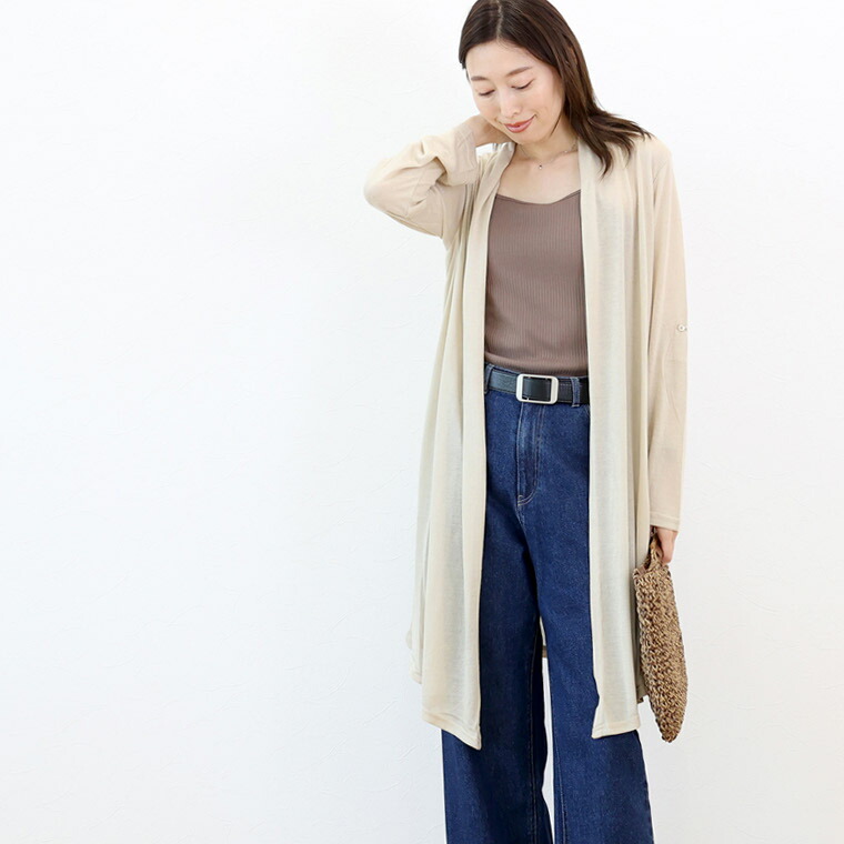 商品名: 袖ループストレッチメッシュロングカーディガン