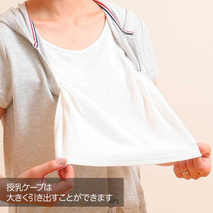 授乳ケープを大きく引き出して使います。ケープで授乳を隠すことができるので、外出先でもスマートに授乳できます。