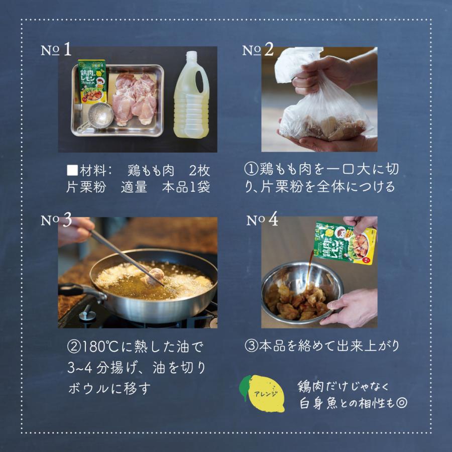 ほんのりレモンが香る甘酸っぱいしょうゆ味は、給食で提供される本物の味と間違えるほど。現役小学生も納得の味わいです。酸味が苦手なお子さまでもパクパク食べらえます。本品は、たれの風味を赤穂市立学校給食センターに監修いただきました。時間が経つと、唐揚げの衣にたれが染み込みしっとりするのでお弁当にもおすすめです。
