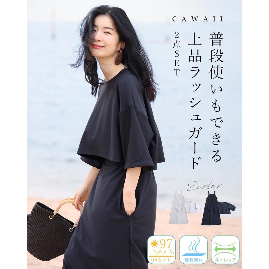 fzp00223od 新作 新着 再入荷 CAWAII FRENCHPAVE フレンチパヴェ エレガント ベーシック カジュアル 可愛い かわいい カワイイ おしゃれ オシャレ お洒落 個性 個性的 定番 ベーシック 大人かわいい 大人可愛い 上品 女性らしい デザイン スタンダード ナチュラル きれいめ キレイめ シンプル フェミニン レディース レディースファッション 大人 ママ ミセス 30代 40代 50代 60代 ラッシュガード セット 二点セット トップス プルオーバー 半端袖 七分袖 ワンピース サロペット オーバーオール ジャンパースカート アイボリー ブラック 黒 ワンサイズ Sサイズ Mサイズ Lサイズ フリーサイズ フリー 小さめ 小さめサイズ 小さい 小さいサイズ 低身長 痩せ ほっそり 小柄 細身 標準サイズ 大きめシルエット 大きい 大きめ ビッグシルエット ぽっちゃり F サイズ自由 日常着 普段着 UVカット 紫外線カット UV対策 紫外線対策 海 プール アウトドア 旅行 日常使い 春 夏 夏服 夏物 春服 春物