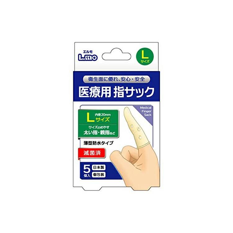 医療用 滅菌指サック 5個入 Lサイズ(内径20mm・親指等) 一般医療機器 日進医療器 L.MO(エルモ)