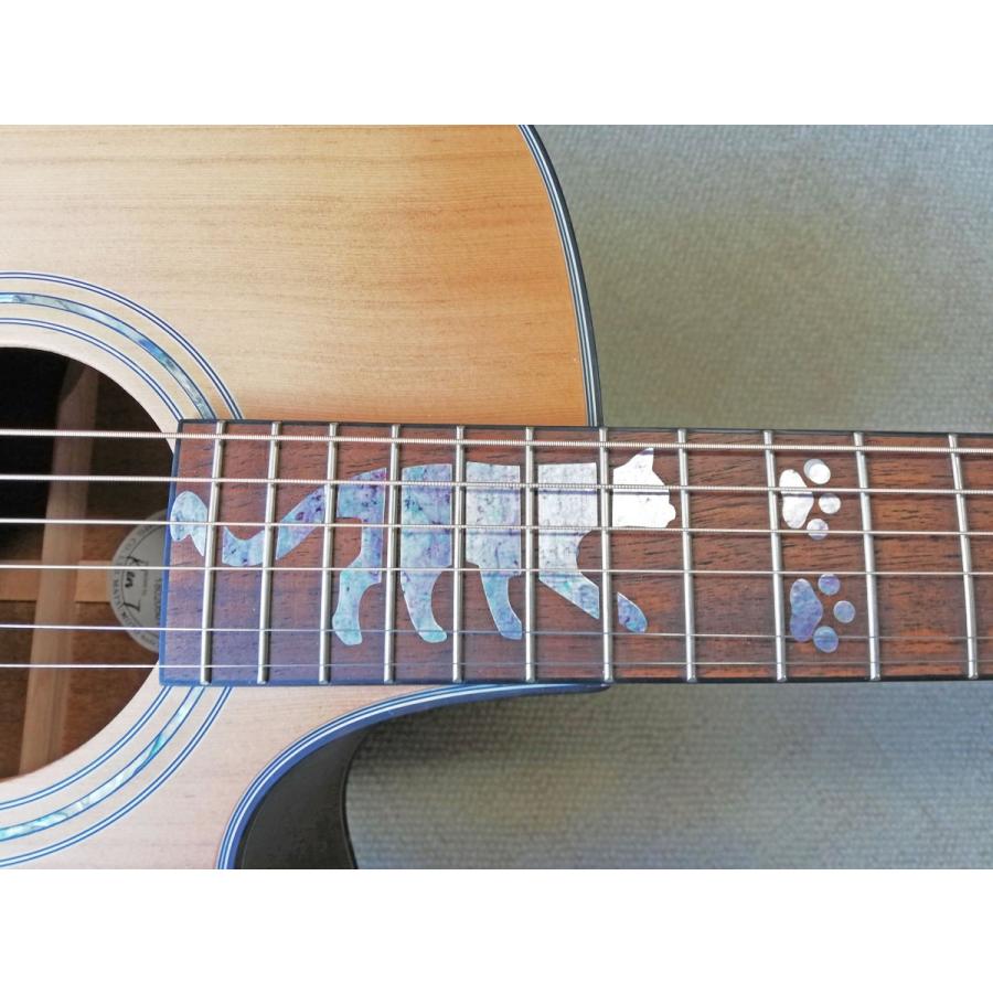 ギターの指板やボディーに貼るだけで、簡単でオシャレにドレスアップできるデザイン性の高いインレイステッカーです。絶妙な厚みと強い粘着性はチョーキングやビブラート演奏にも剥がれにくくて、ライトに照らし出されてキラキラと美しく反射する様はゴージャスで演奏を楽しくさせてくれます。