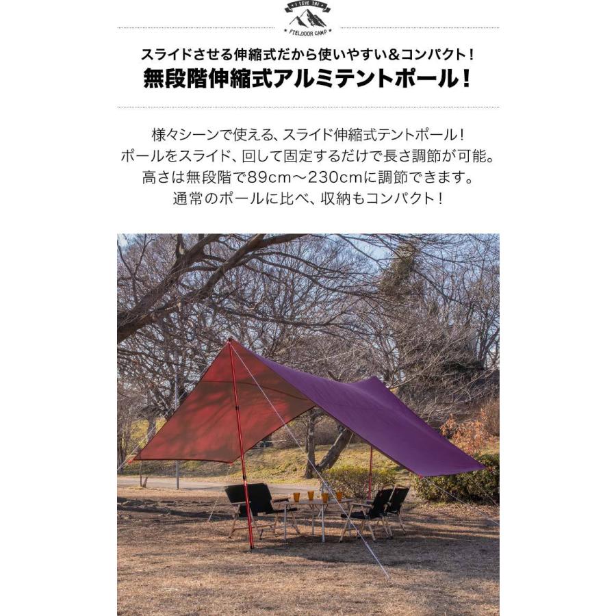 様々シーンで使える、スライド伸縮式テントポール!ポールをスライド、回して固定するだけで長さ調節が可能。高さは無段階で89cm〜230cmに調節できます。通常のポールに比べ、収納もコンパクト!