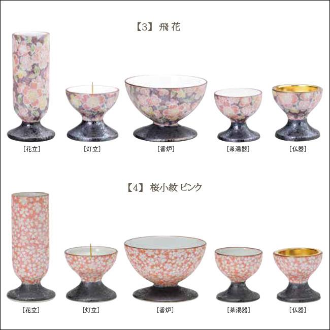 あやかシリーズは、有田焼の特徴である鮮やかな色彩を取り入れた仏具セットで、桜など日本を代表する花をモチーフにした6柄をご用意しています。