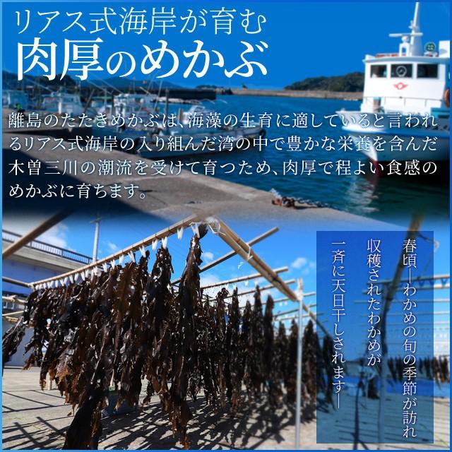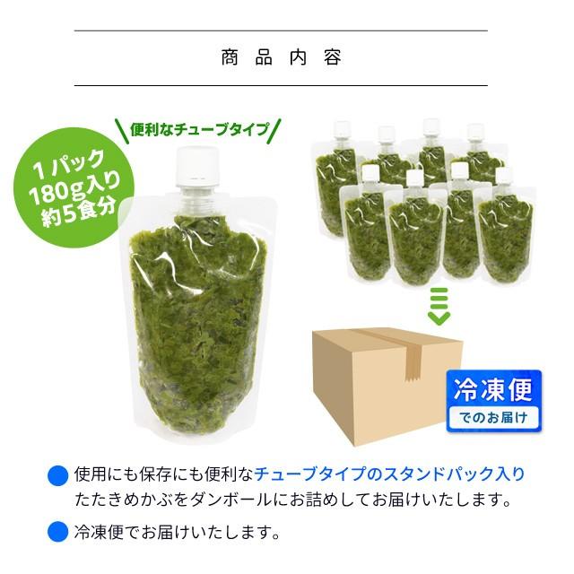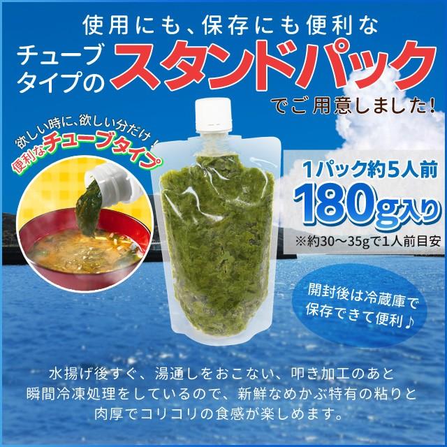 めかぶを水揚げ後、湯通しと叩き加工をして瞬間冷凍しているので、新鮮なめかぶ特有の粘りと肉厚でシャキシャキの食感が楽しめます