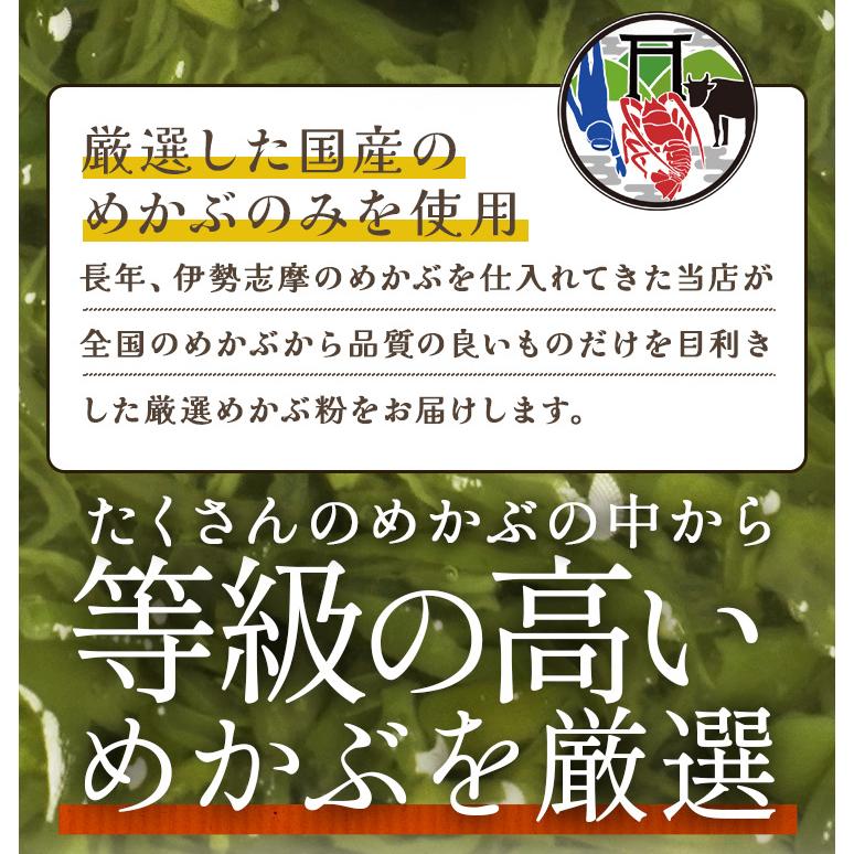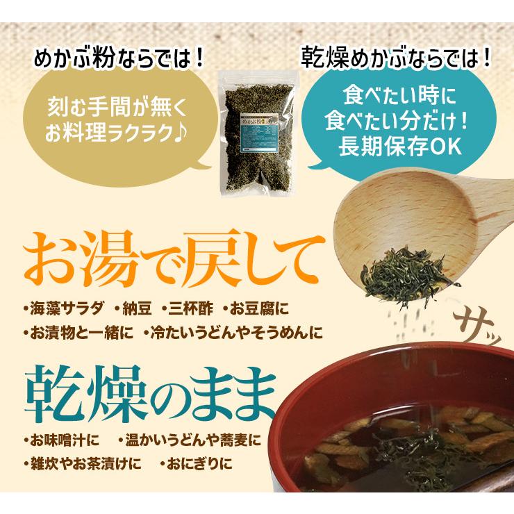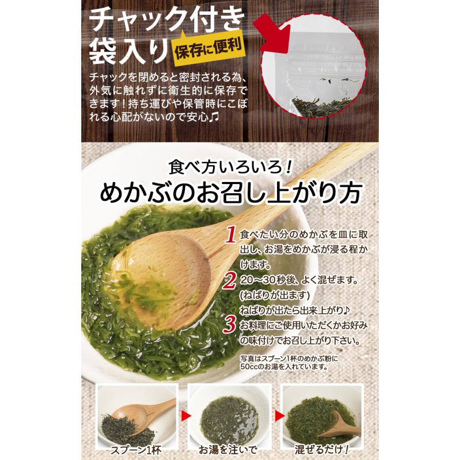 国産めかぶを100%使用した粗めのめかぶ粉。おにぎりやお味噌汁にサッとひと振り、お手軽・便利にお使いいただけます