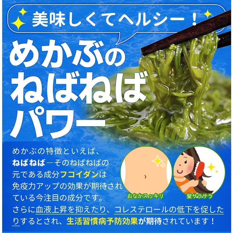 食べたい分だけサッと湯戻し 美味しくってヘルシーなめかぶを毎日手軽にお召し上がりいただけます。