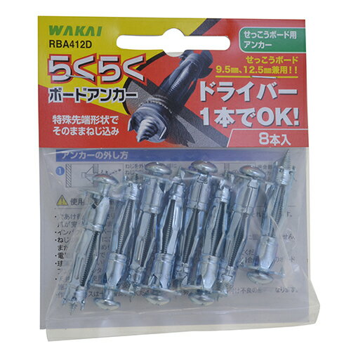 RBA412D (RBA-412) 若井産業 WAKAI 石膏ボード用 らくらく ボードアンカー 8本入り 下穴不要 |(メール便対応)